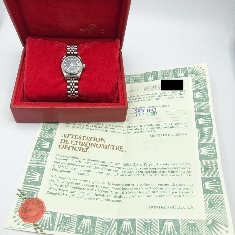 A classic and feminine model, the Datejust 10P Diamond. A new diamond model that meets strict quality standards and pays attention to the details of how the diamonds are displayed. With its intelligence and cuteness, it is a popular item as a first Rolex, and creates a glamorous adult woman. Comes with a genuine Rolex case. Comes with a Rolex warranty from August 2000. It has been overhauled, inspected, and finished by a first-class watch repair technician, so you can use it with confidence.