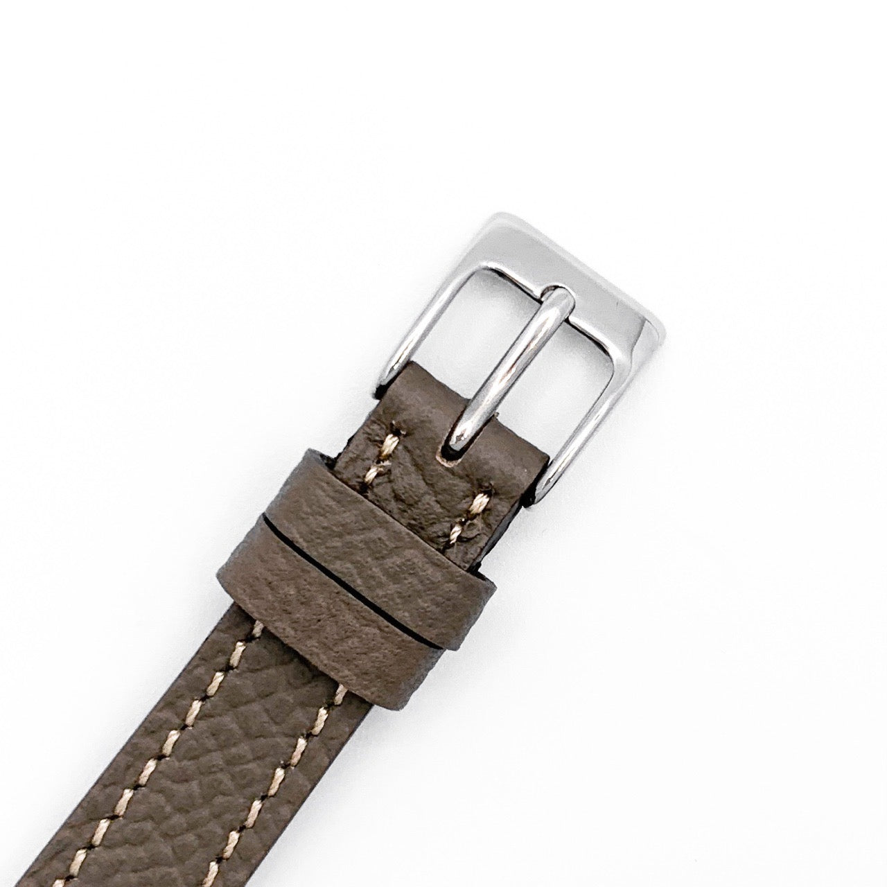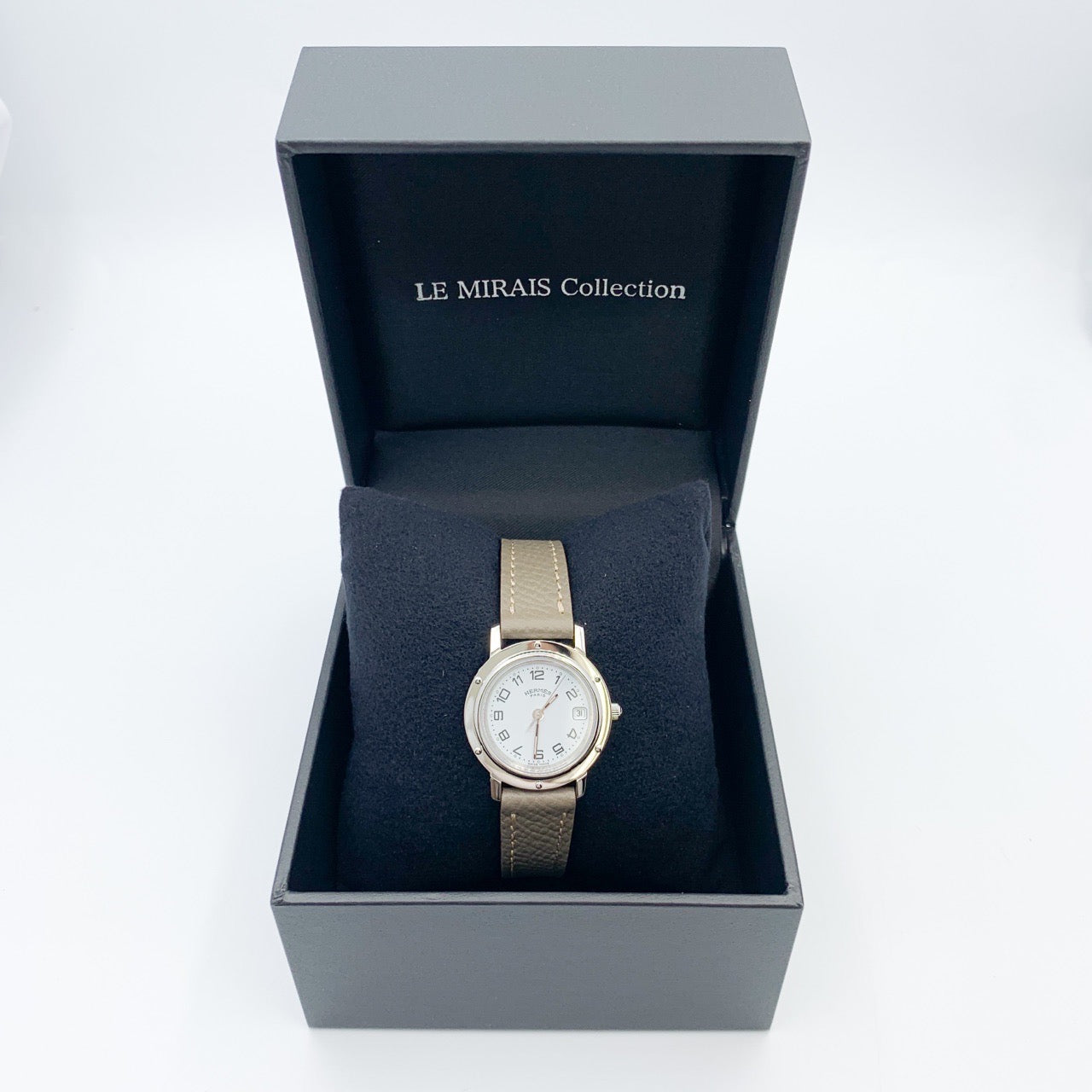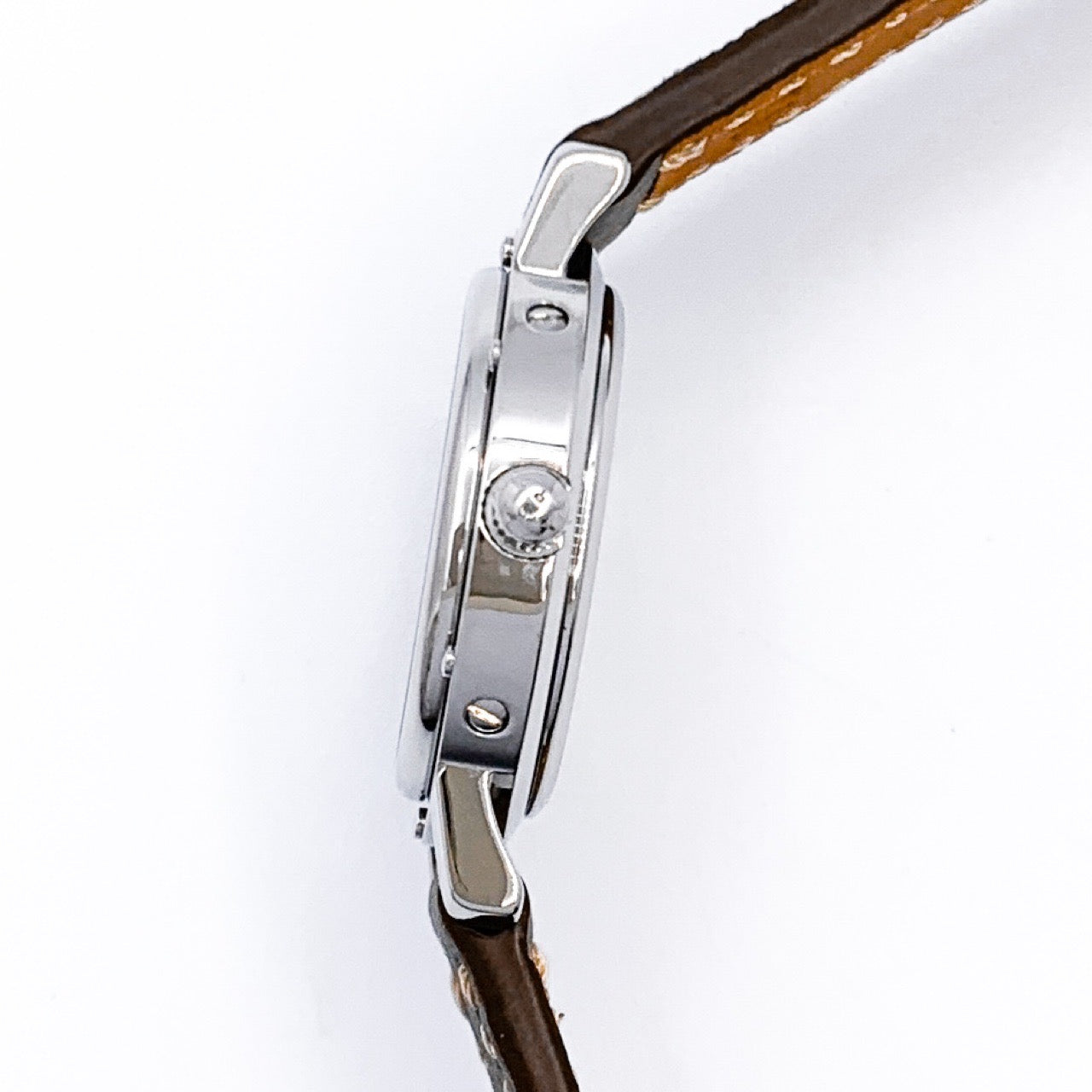 世代を超えて愛されるHERMES。 シンプルながらもデザイン性の高いベゼルが、お洒落心を満たし、憧れのHERMESがあなたの腕元を彩る逸品。 当店職人、一級時計修理技能士による電池交換、点検、外装仕上済みで安心してご愛用いただけます。