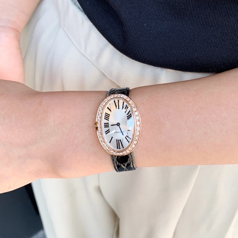The current model, "Baignoire," exudes elegance with its unique lines, adding a sharp impression to its feminine style. The elegant luster of the PG and the sparkle of the diamonds create a presence that elevates the wrist. Our artisans and first-class watch repair technicians have replaced the battery, inspected the watch, and polished the exterior, so you can enjoy it with peace of mind.