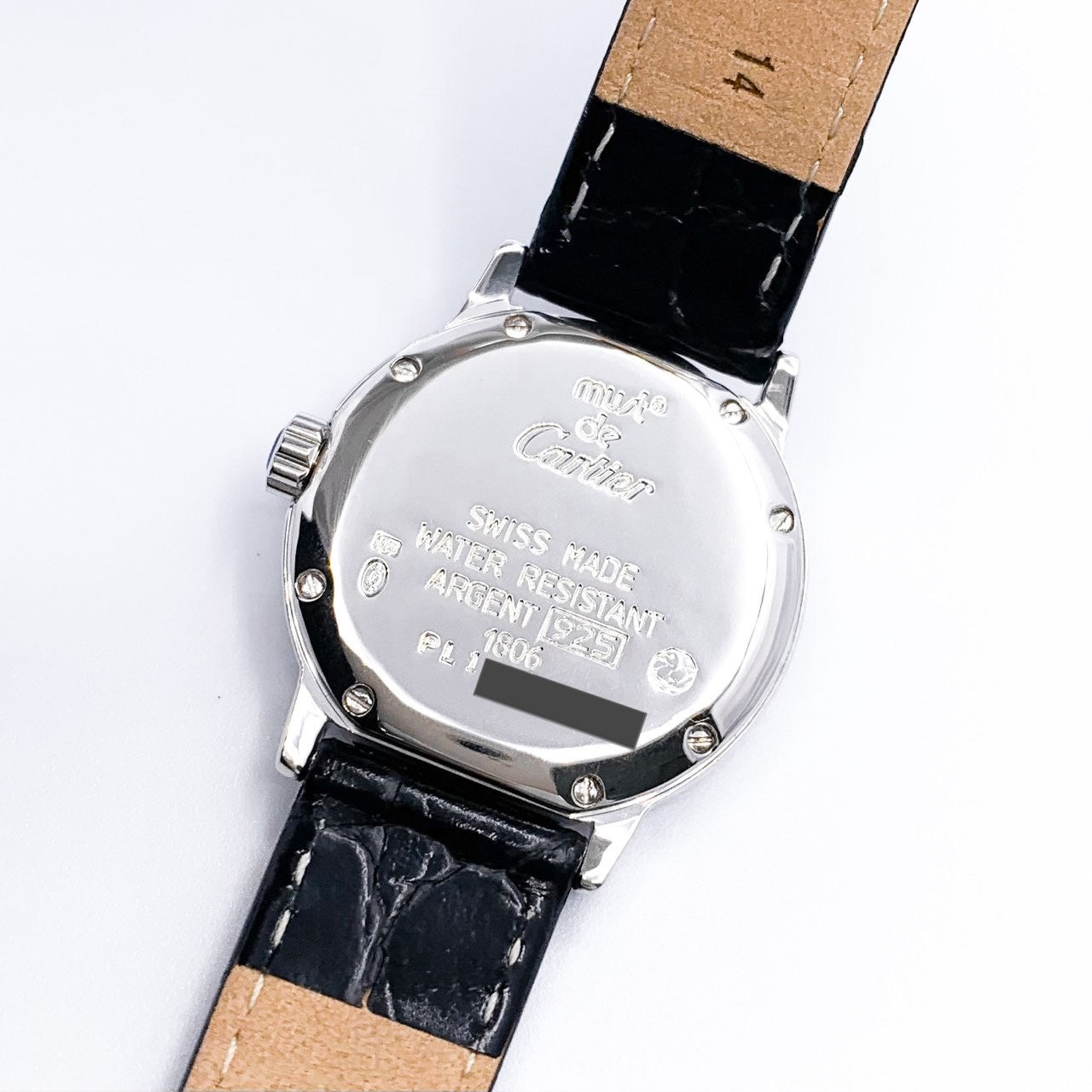 Accessories: Cartier warranty card, genuine Cartier case, booklet, strap replacement tool, our store warranty card