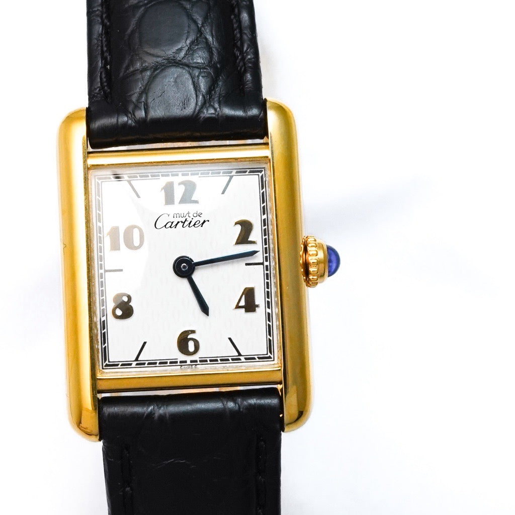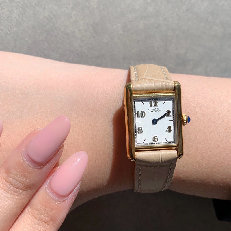 Cartier's ever-popular Tank, with its rare Arabic dial, is currently very hard to come by and is a one-of-a-kind design that is popular with both men and women. Our craftsmen and first-class watch repair technicians have replaced the battery, inspected it, and finished the exterior, so you can use it with peace of mind.