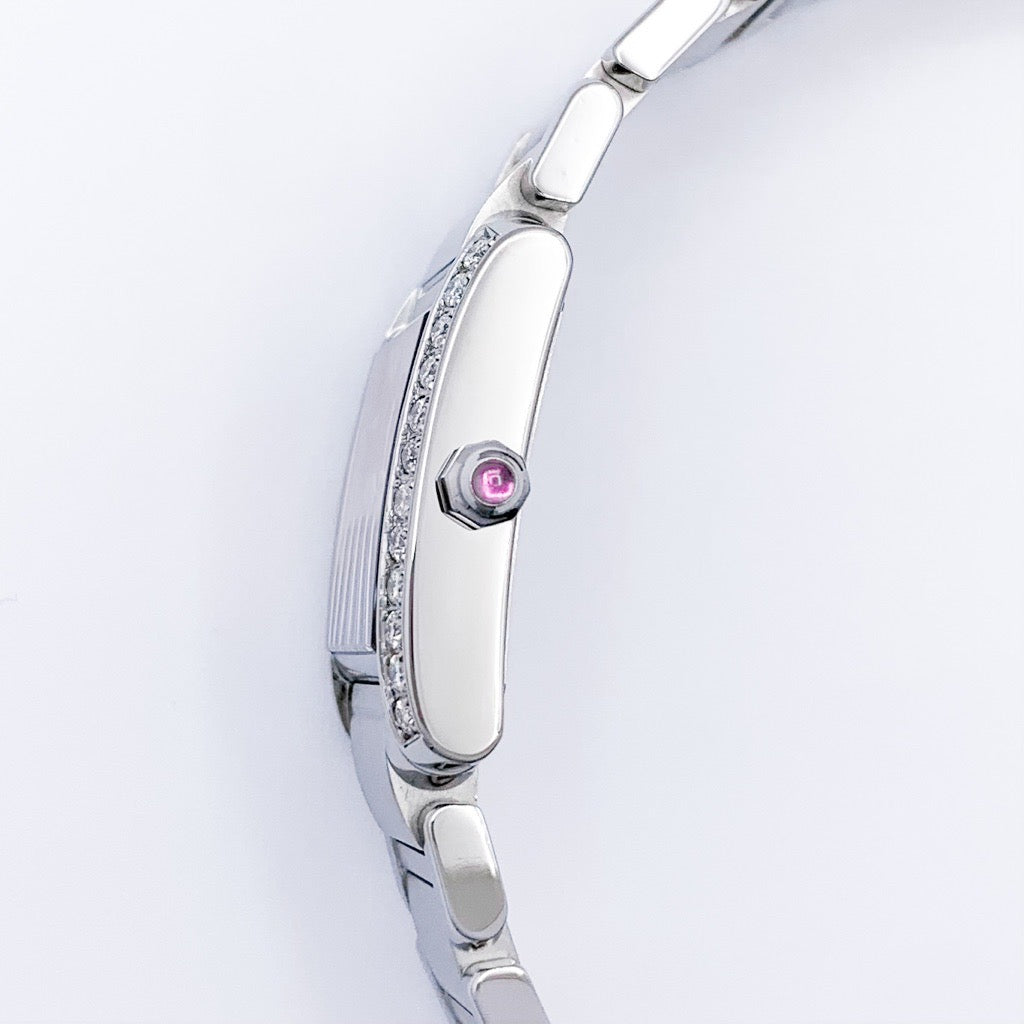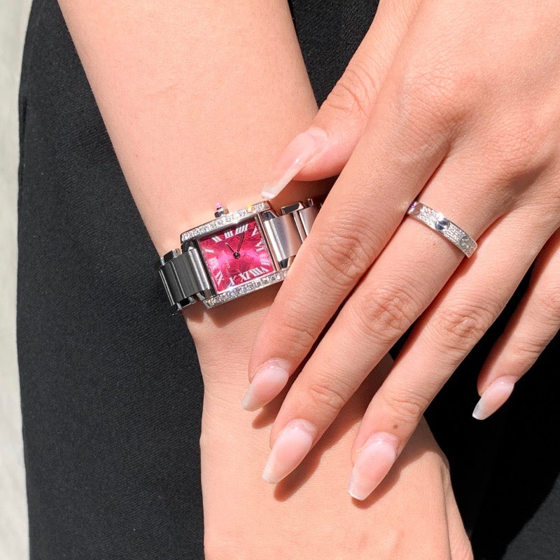The Tank Française is one of the most popular watches in the CARTIER series. The raspberry dial is a rare model that was only sold for a limited time. It is no longer in production, but the gorgeous presence of the diamonds makes it a unique piece. Comes with a Cartier warranty and original case. The battery has been replaced, inspected, and the exterior has been finished by our craftsmen and first-class watch repair technicians, so you can use it with peace of mind.