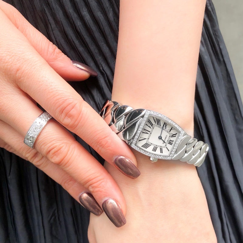 Size: Case width approximately 22mm, bracelet up to approximately 15cm. Strap: Genuine Cartier bracelet (please contact us before purchasing if you would like to add extension links).