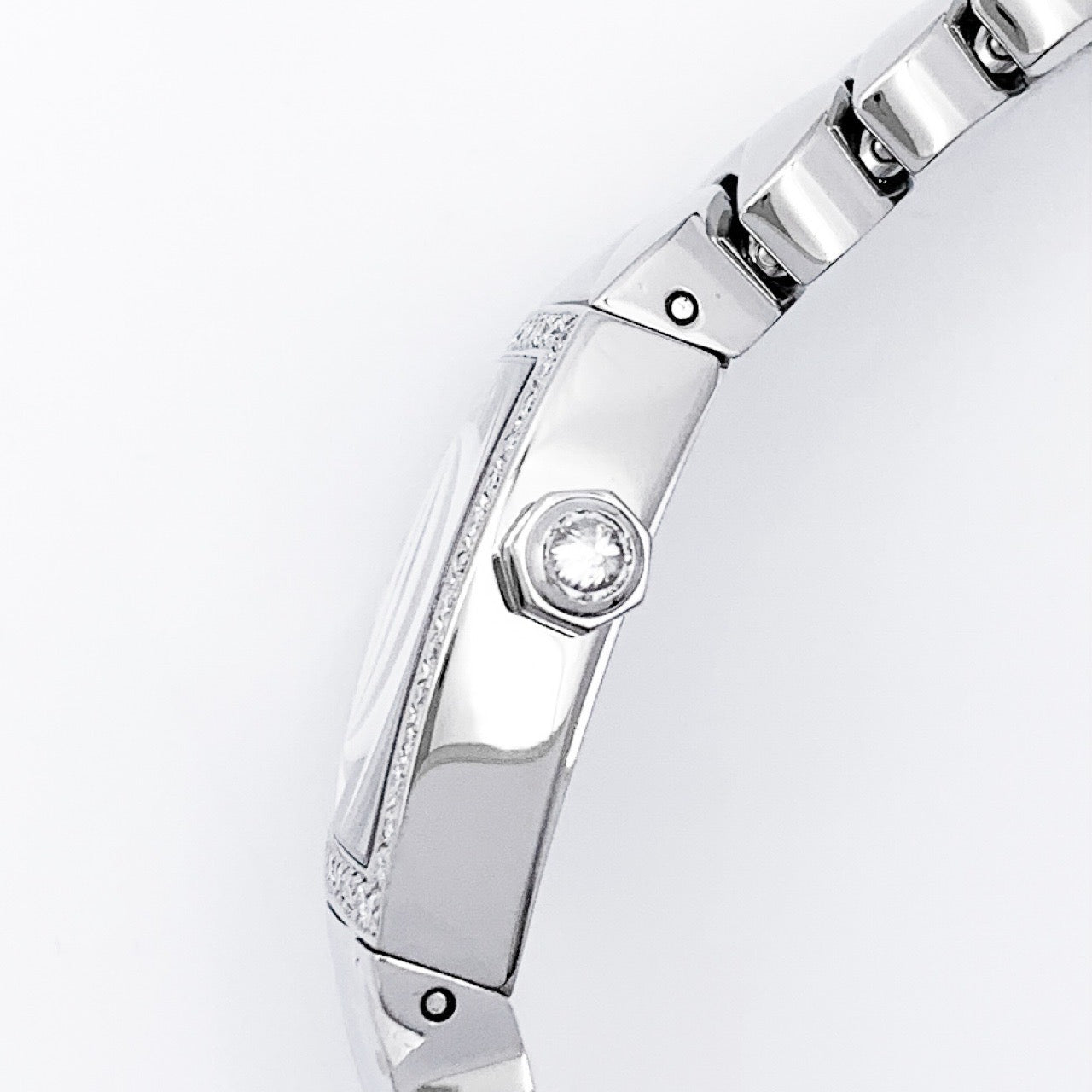 Created as a tribute to Maria Félix, the 1950s film actress, the La Donya features a dignified appearance inspired by scales and smooth curves, creating a meticulously crafted form that looks beautiful from any angle. Diamonds on the bezel add a touch of glamour to any wrist. This exceptionally rare watch, available for only three years, is perfect for the discerning watch lover. A first-class watch repair technician has replaced the battery, inspected it, and polished the exterior, ensuring peace of mind.