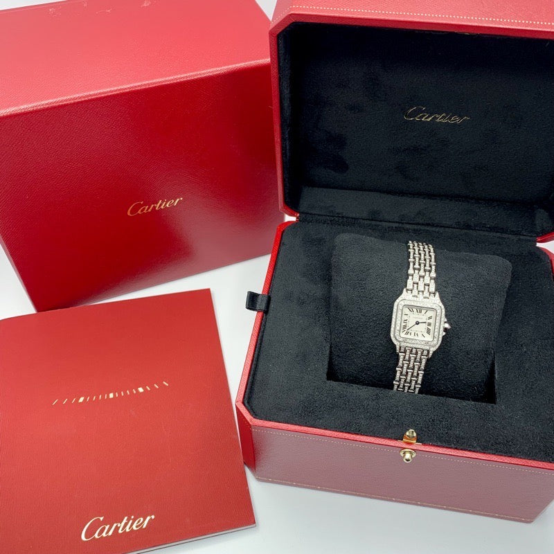 The Panthère de Cartier, a timepiece that has enjoyed unwavering popularity since its launch in 1983, was once discontinued but has now been reissued in a much-anticipated form. The diamonds lining the bezel and the entire bracelet are also fully set with diamonds, creating a luxurious and stylish piece that exudes a unique aura. While a jewelry watch, it complements a wide range of styles, from formal to casual, and adds a touch of color to your everyday look. Our artisans and first-class watch repair technicians have replaced the battery, inspected it, and polished the exterior, so you can enjoy it with peace of mind.