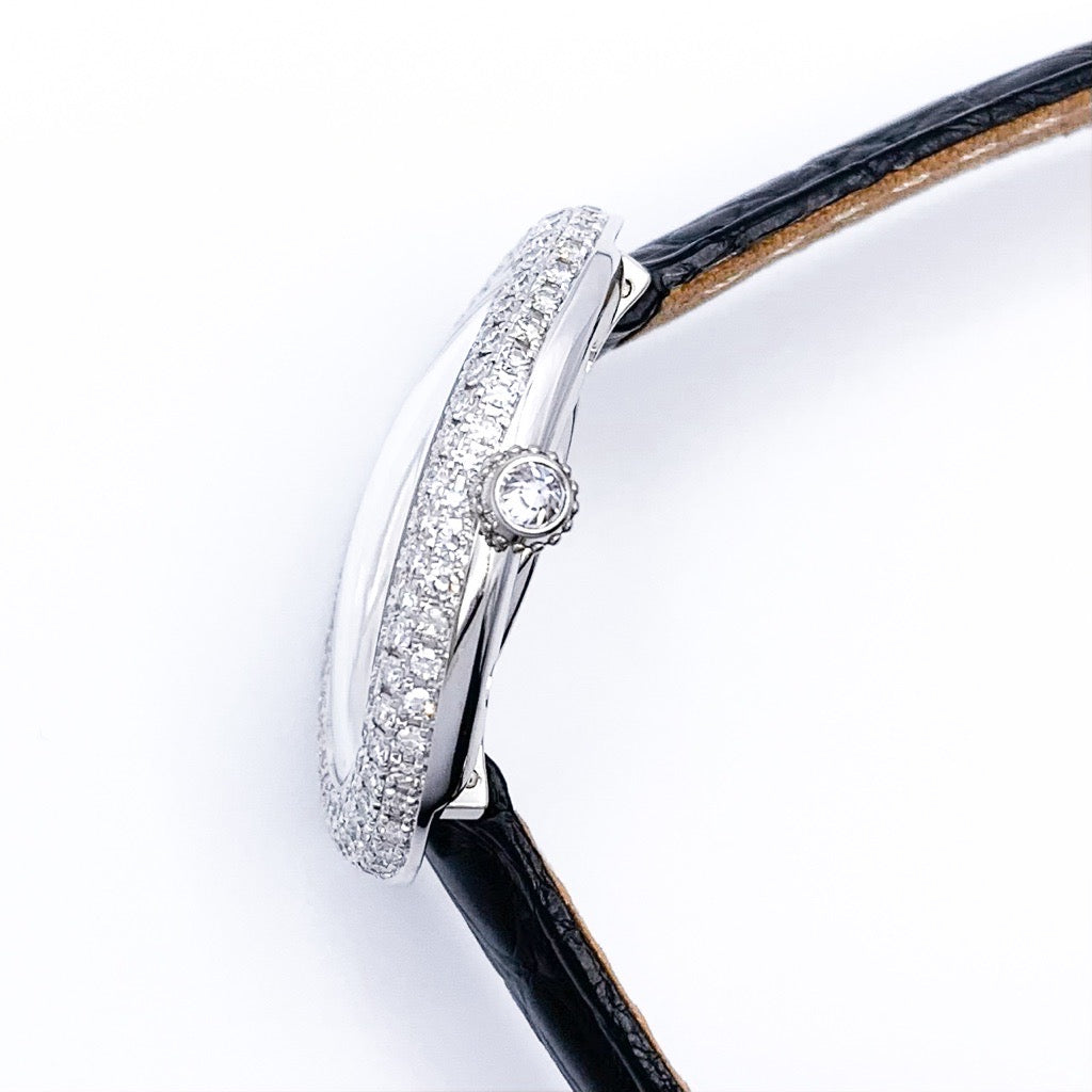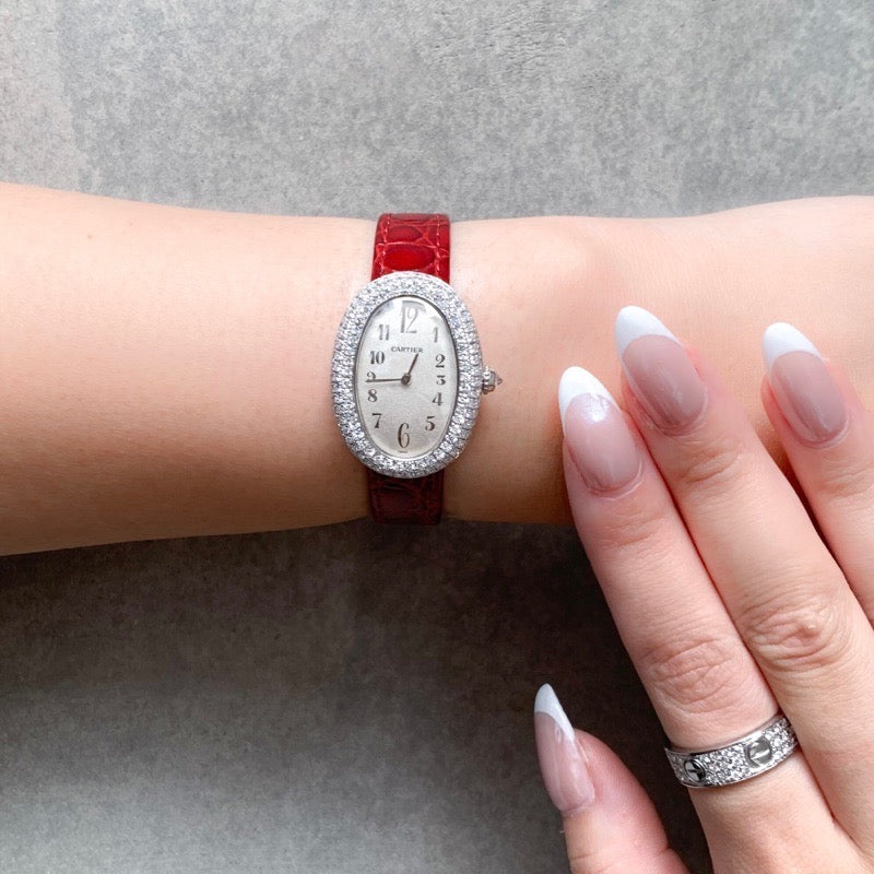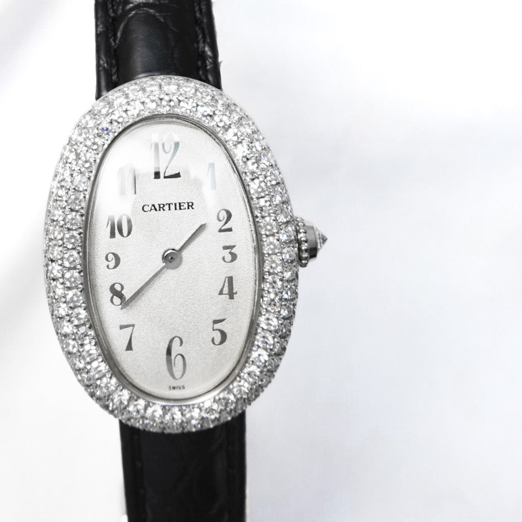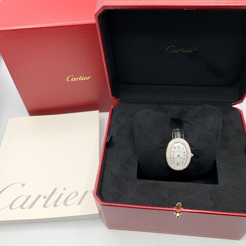 CARTIER/Baignoire K18 WG Arabic dial Genuine diamonds Leather