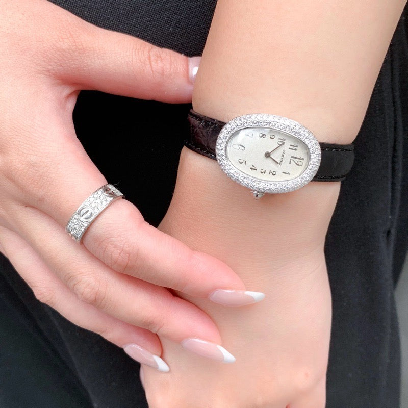 The original lines of the oval shape of the Baignoire exude modest elegance. The diamonds on the bezel add a gorgeous touch to your wrist, and the neat beauty exudes eternal elegance. The Arabic dial, which is rare for Cartier, which often uses Roman indexes, is an eye-catching masterpiece. The battery has been replaced, inspected, and the exterior has been finished by a first-class watch repair technician, so you can use it with confidence.