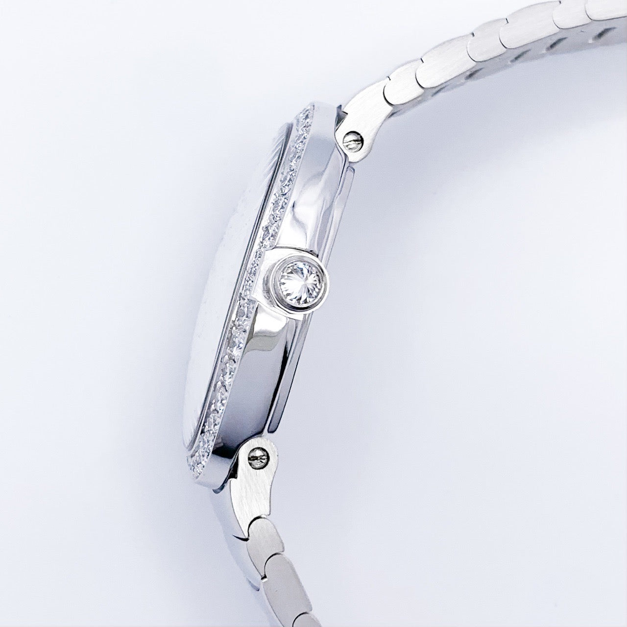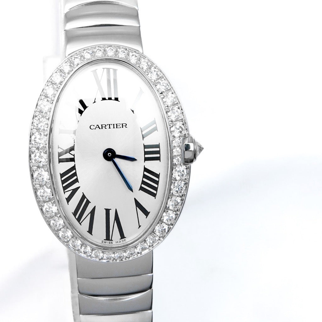 The original lines of the Baignoire exude elegance. A model that adds a sharp impression to a feminine style. The elegant shine of the K18WG and genuine diamonds create a higher-grade wrist. Comes with a Cartier warranty and has been battery replaced, inspected, and finished by our craftsmen and first-class watch repair technicians, so you can use it with confidence.