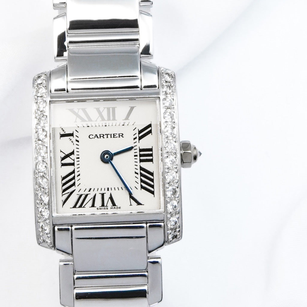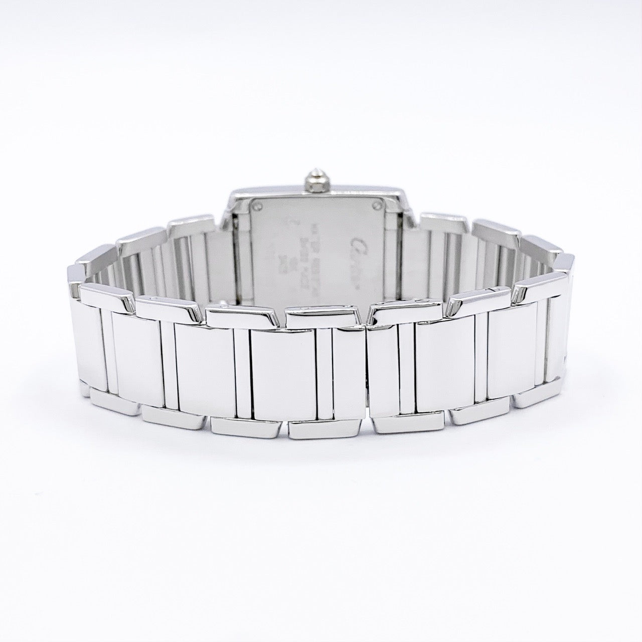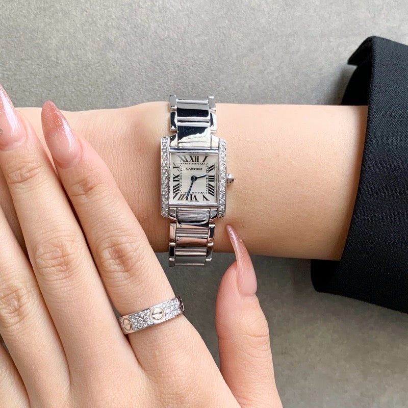 The Tank Française is one of the most popular watches in the CARTIER series and is also a classic first Cartier watch. The diamonds on the white gold bezel and the lustrous bracelet add a touch of glamour to any outfit, making it a watch you can love for a long time. It comes with a Cartier warranty from May 2001 and has had the battery replaced, inspected, and finished by our craftsman and a first-class watch repair technician, so you can use it with peace of mind.