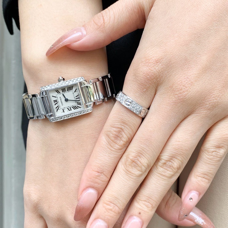 Size: Case: Approx. 20mm wide, Bracelet: Approx. 14.5cm; Strap: Genuine Cartier bracelet; Weight: 72.32g