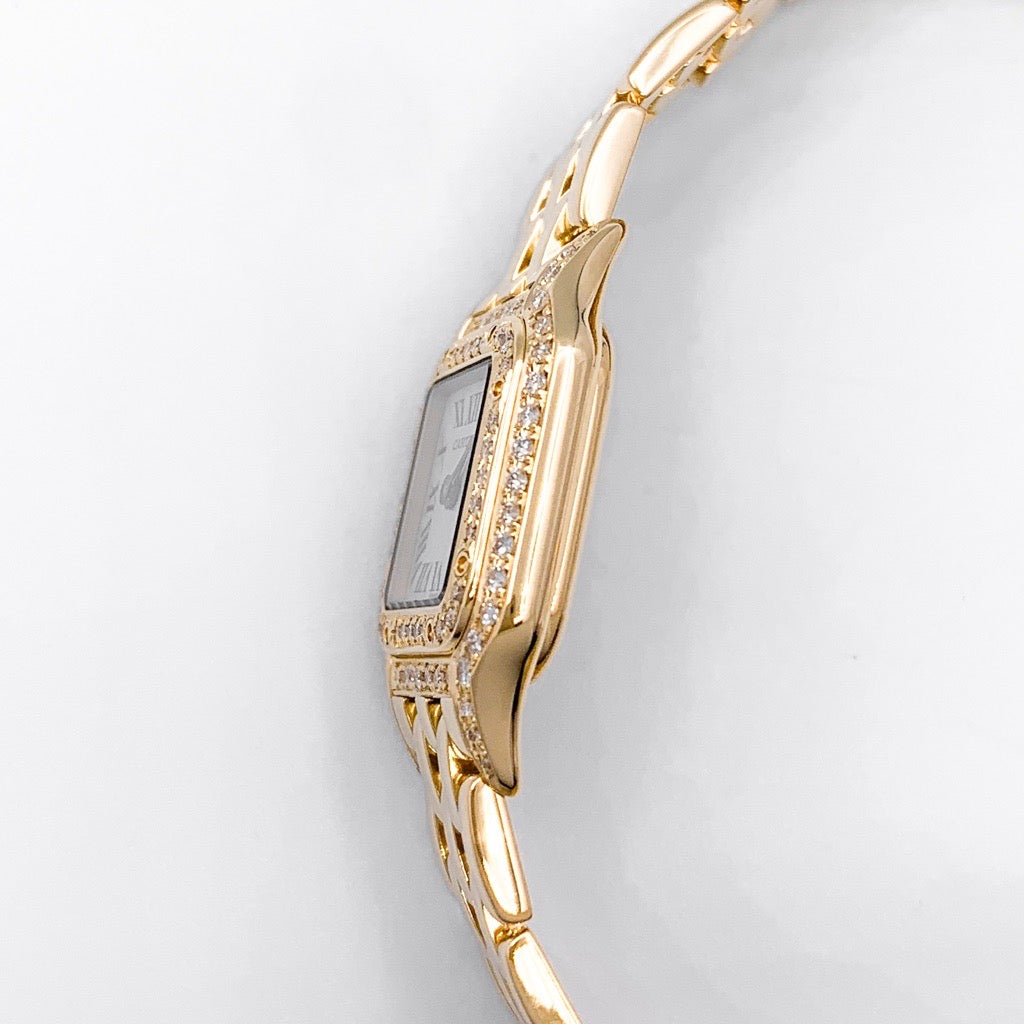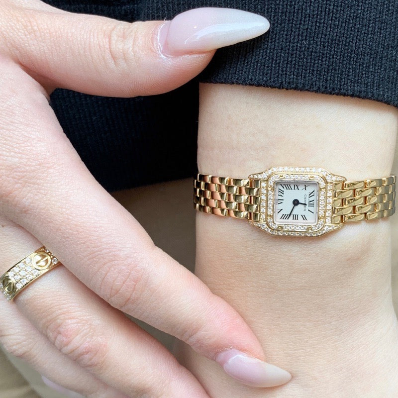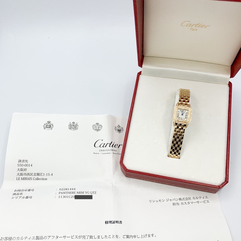 This mini-size watch, which has no crown and feels like jewelry, is a rare and now discontinued gem. Its elegant design and elegant brilliance, created by the combination of 18K yellow gold and genuine diamonds, are captivating. It comes with a Cartier repair certificate and a Cartier complete service, so you can enjoy it with peace of mind.*