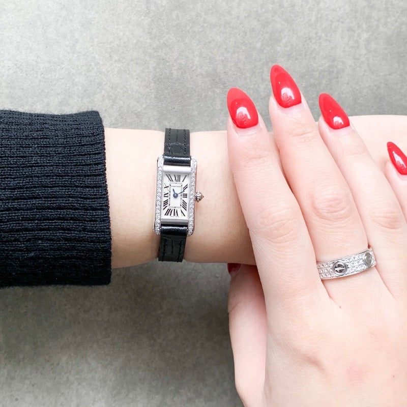 CARTIER/Tank Allonge K18WG Diamond Leather