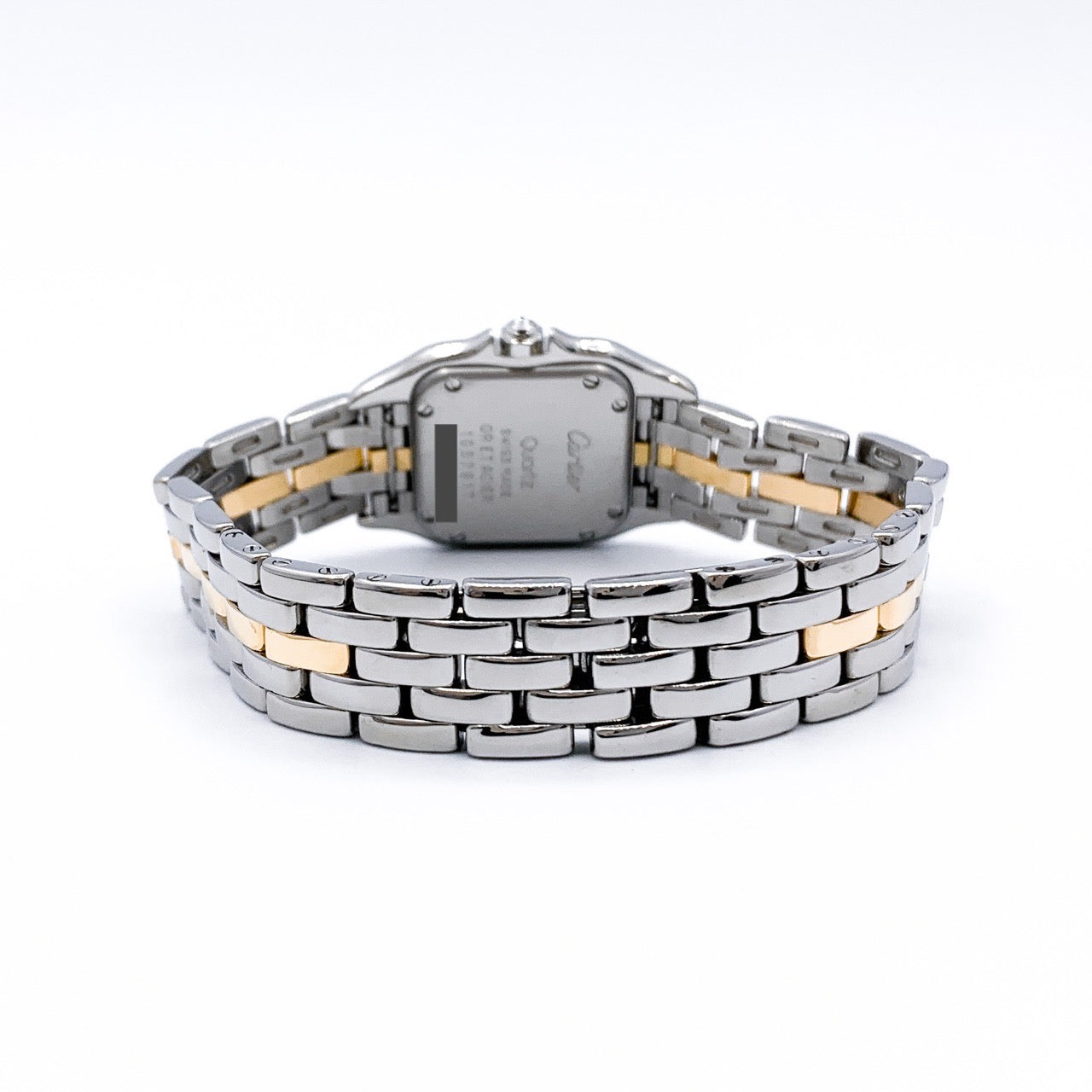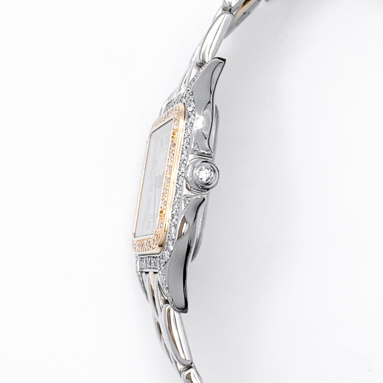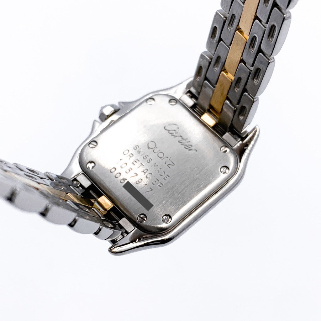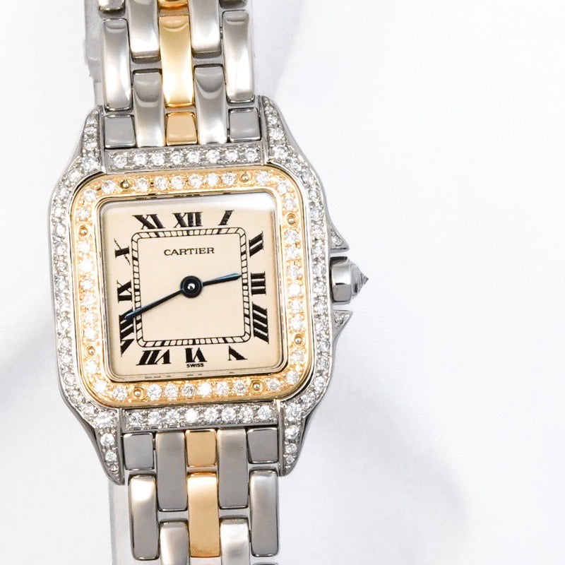 Since its launch in 1983, the Panthère de Cartier has been immovably popular. Its delicate bracelet design creates an elegant look on the wrist. This one-row model goes well with any jewelry, and its vintage design, which is not available in current models, will add a touch of glamour to your wrist. It has been overhauled, inspected, and finished by our craftsmen and first-class watch repair technicians, so you can use it with confidence.