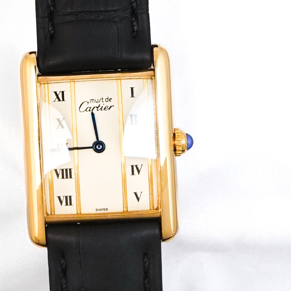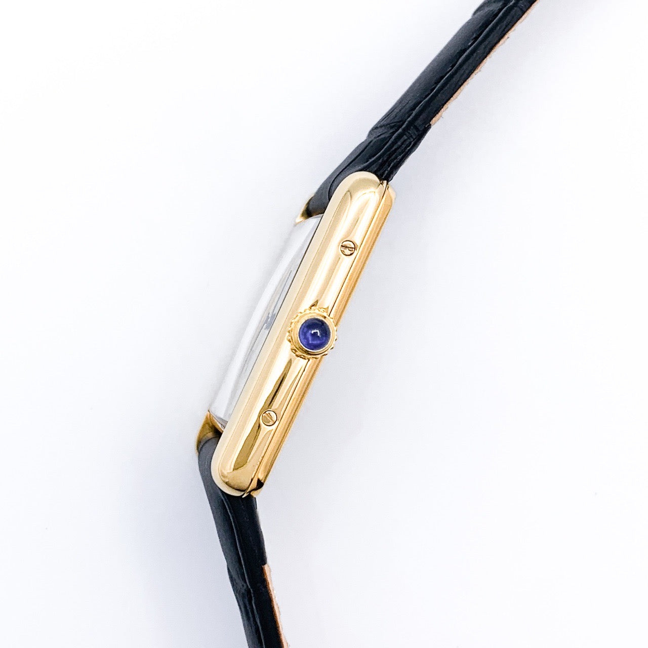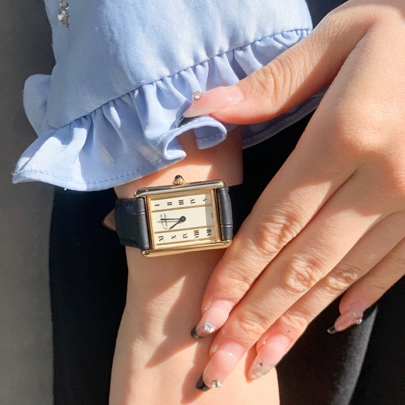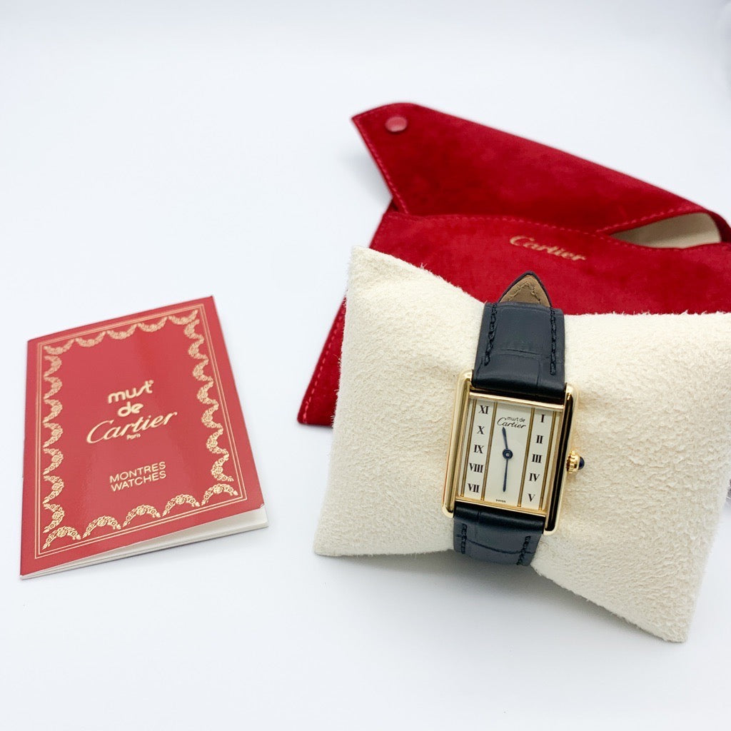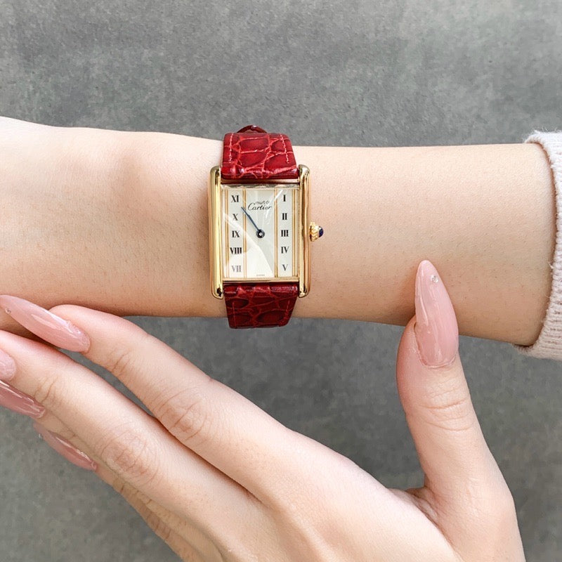 The Tank, which has been popular for over 100 years since its birth, features a square case and a classic design with no unnecessary decorations, allowing for an elegant look in any situation, from formal to casual. The LM size is a popular size for both men and women. The watch has been overhauled, inspected, and finished by our craftsmen and first-class watch repair technicians, so you can use it with confidence.