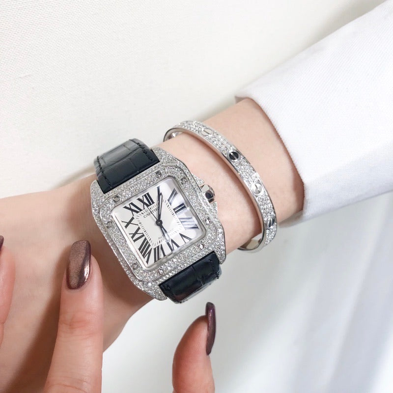 The Santos 100, released to commemorate the 100th anniversary of the Santos, is a masterpiece that is popular with both men and women, with a large and powerful body that is in contrast to the delicacy seen in the Santos collection so far. Diamonds are lavishly set, making it a jewelry watch that goes beyond a wristwatch. Singer Nick Jonas and others love it. It has been inspected and finished by our craftsmen and first-class watch repair technicians, so you can use it with confidence.
