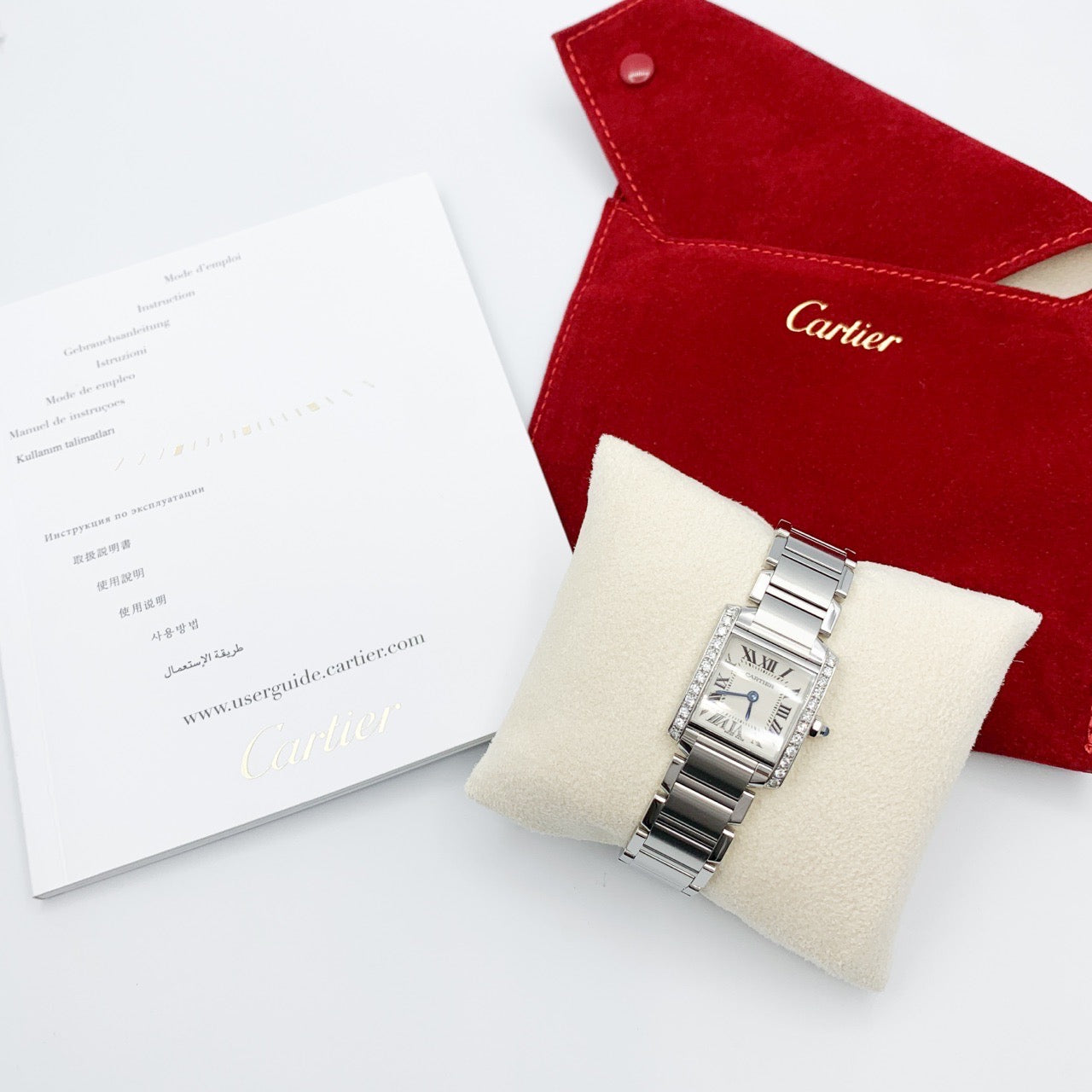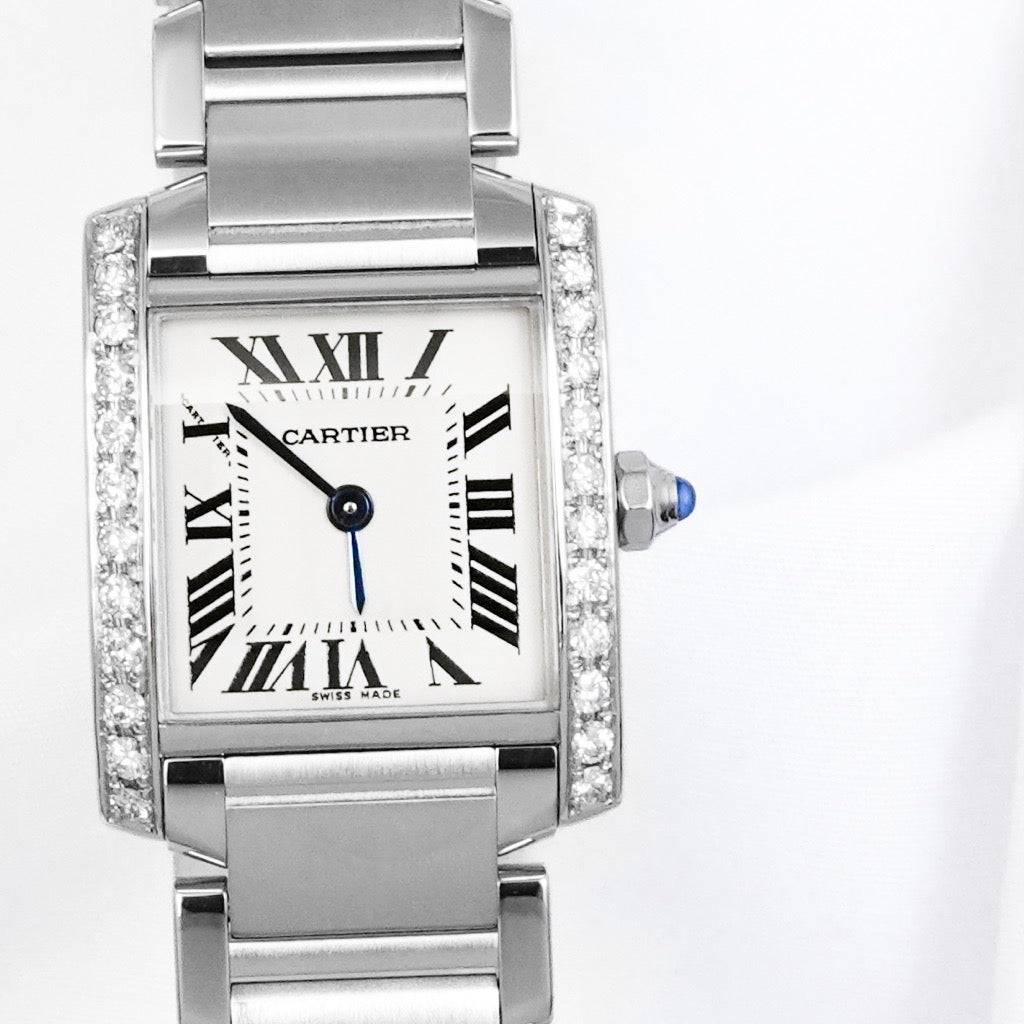 The Tank Française is a particularly popular piece in the CARTIER series and a classic first Cartier piece. With its diamond-adorned bezel and modern bracelet-like design, it complements any outfit and is a timepiece you can cherish for years to come. It has been overhauled, inspected, and refinished by our artisans and first-class watch repair technicians, so you can enjoy it with peace of mind.
