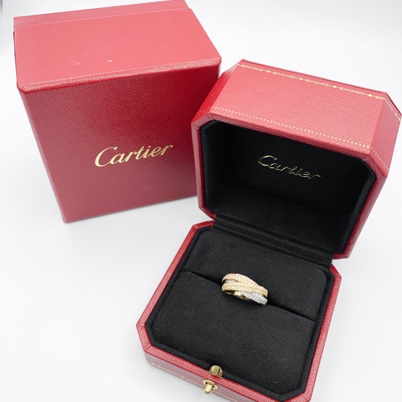 The Trinity ring, which was created in 1924 by Louis Cartier's rich imagination, is one of the jewels that symbolize the Maison. It is a popular masterpiece that can be worn for a long time. The highly artistic design that is characteristic of Cartier and the diamonds on all three colors add color to your hands. The exterior has been finished so you can wear it with confidence.