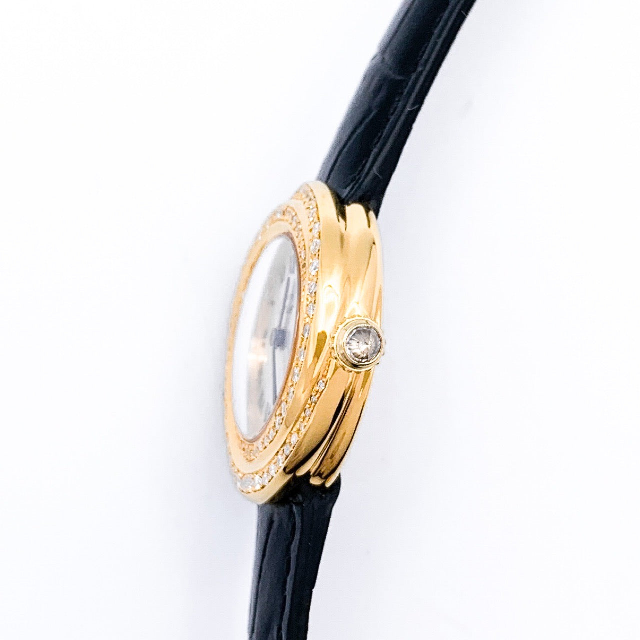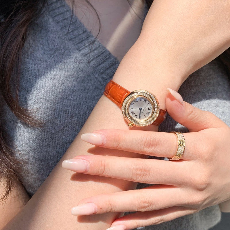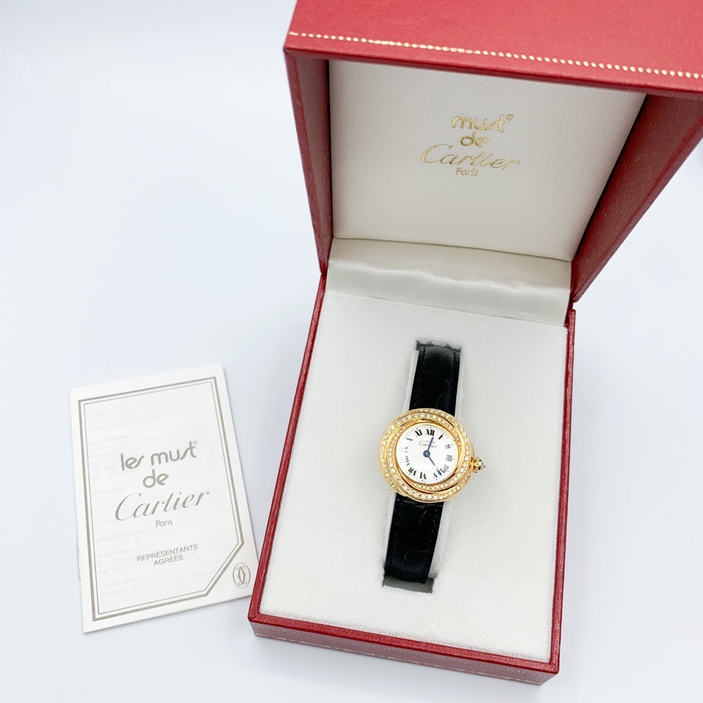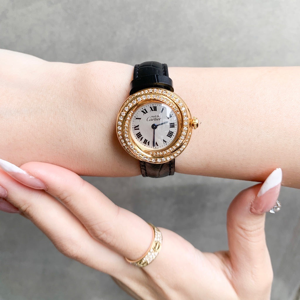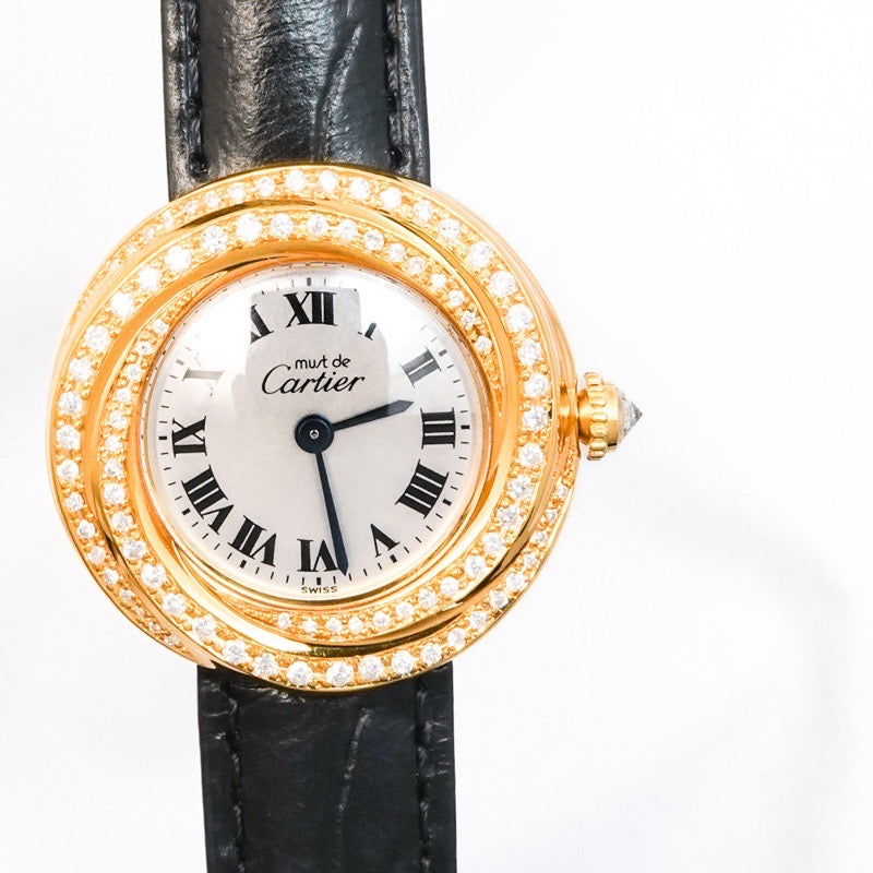 This watch collection was created in 1997 and incorporates the symbolic design of Cartier's iconic jewelry, the Trinity. The three-ring spiral structure is beautiful, and the diamonds give off an elegant shine. Our craftsmen and first-class watch repair technicians have replaced the battery, inspected the watch, and finished the exterior, so you can use it with peace of mind.