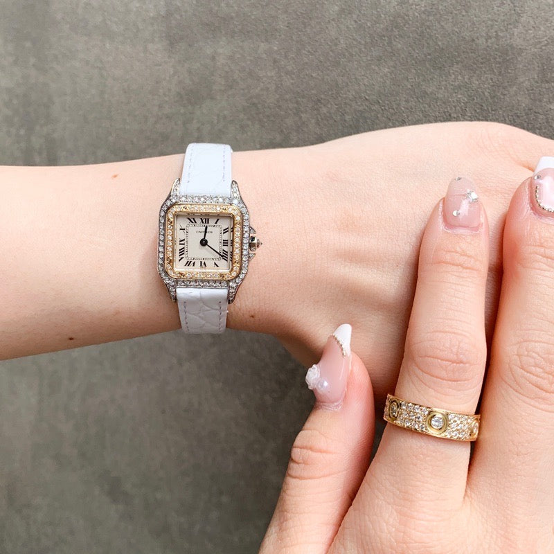 The iconic watch representing CARTIER, the Panthere de Cartier, is easy to match with any jewelry, and the combination of colors and diamonds that you can love for a long time will satisfy your fashion sense. The Panthere is not a bracelet model, but rather a leather strap model that creates an impressive wrist. It has been overhauled, inspected, and finished by our craftsmen and first-class watch repair technicians, so you can use it with confidence.