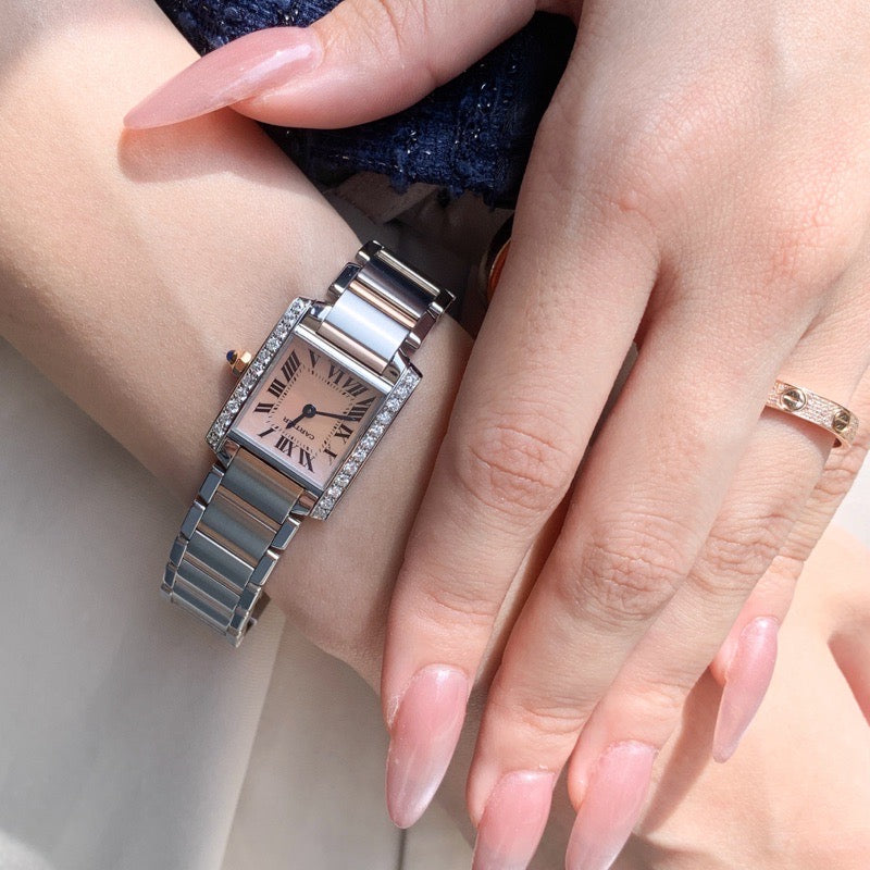 The Tank Française is a particularly popular piece in the CARTIER series and a classic first Cartier piece. Its modern bracelet-like design brings a modern twist to the wrist. Its timeless color combinations, easy to pair with any jewelry, create a striking look that will satisfy any fashionista. Our artisans and first-class watch repair technicians have replaced the battery, inspected the watch, and polished the exterior, so you can enjoy it with peace of mind.