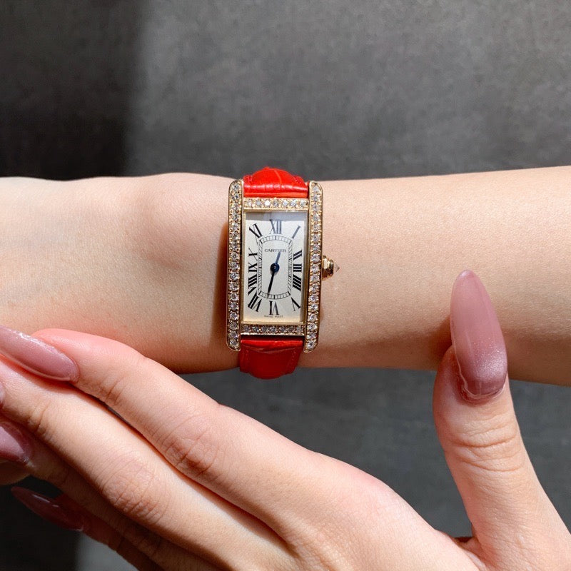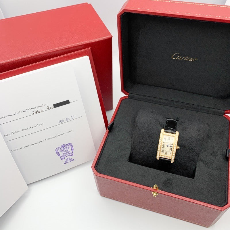 The Tank Américaine is a strikingly sharp and stylish addition to the Tank series. The diamond-set bezel adds elegance to your wrist. It comes with a Cartier warranty dated February 2019, and has been inspected, refurbished, and serviced by our store's first-class watch repair technicians, ensuring peace of mind.