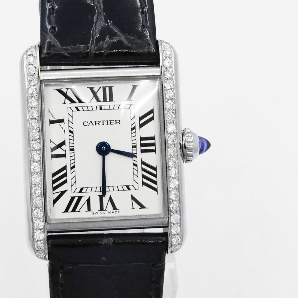 カルティエの人気モデル(タンク)シンプルでユニセックスなデザインが、洗練されたデザインを楽しむことができるモデルとして男女ともに高く支持されているタンクマスト。ベゼルのダイヤモンドがおしゃれのアクセントに。一級時計修理技能士による電池交換、点検、外装仕上済みで安心してご愛用いただけます。