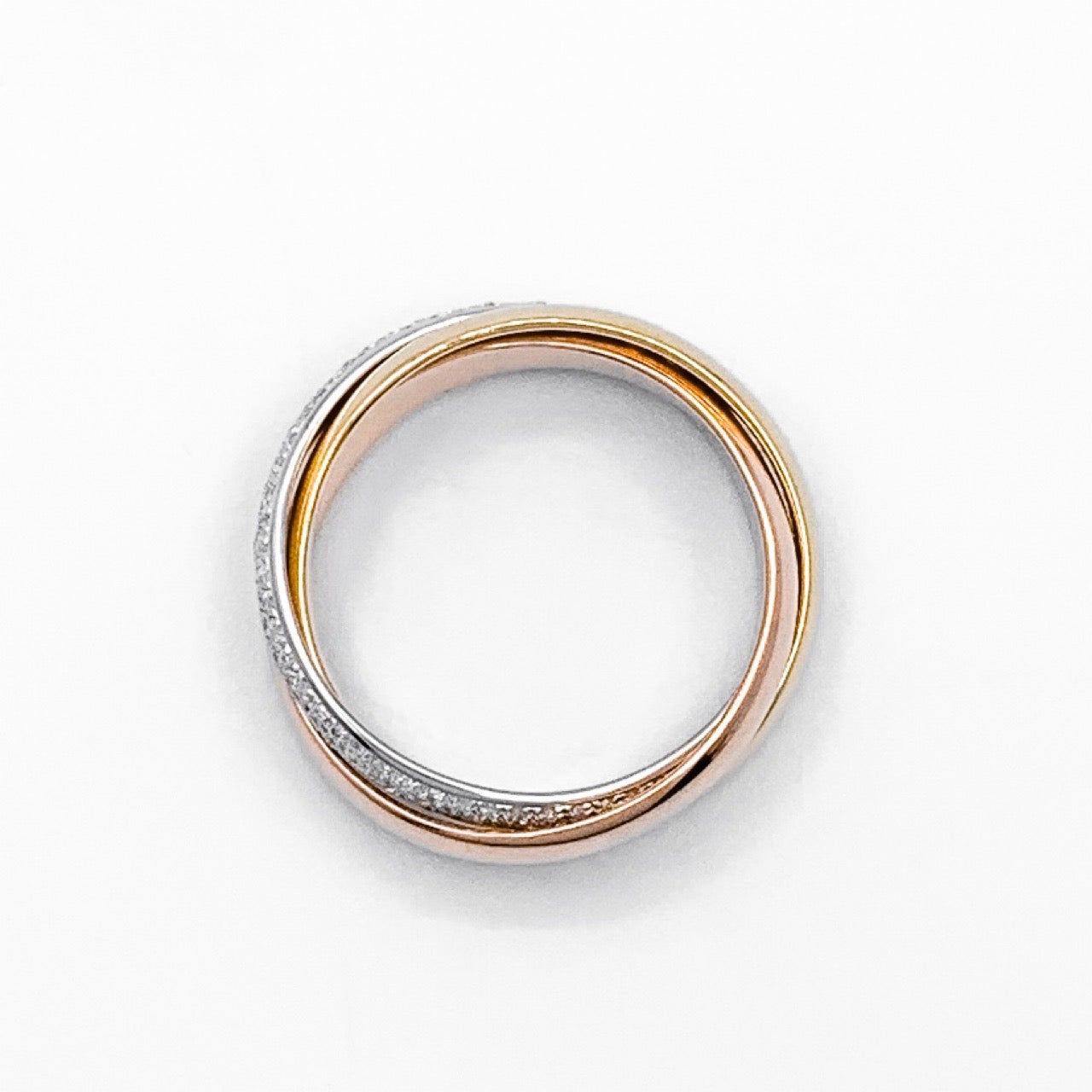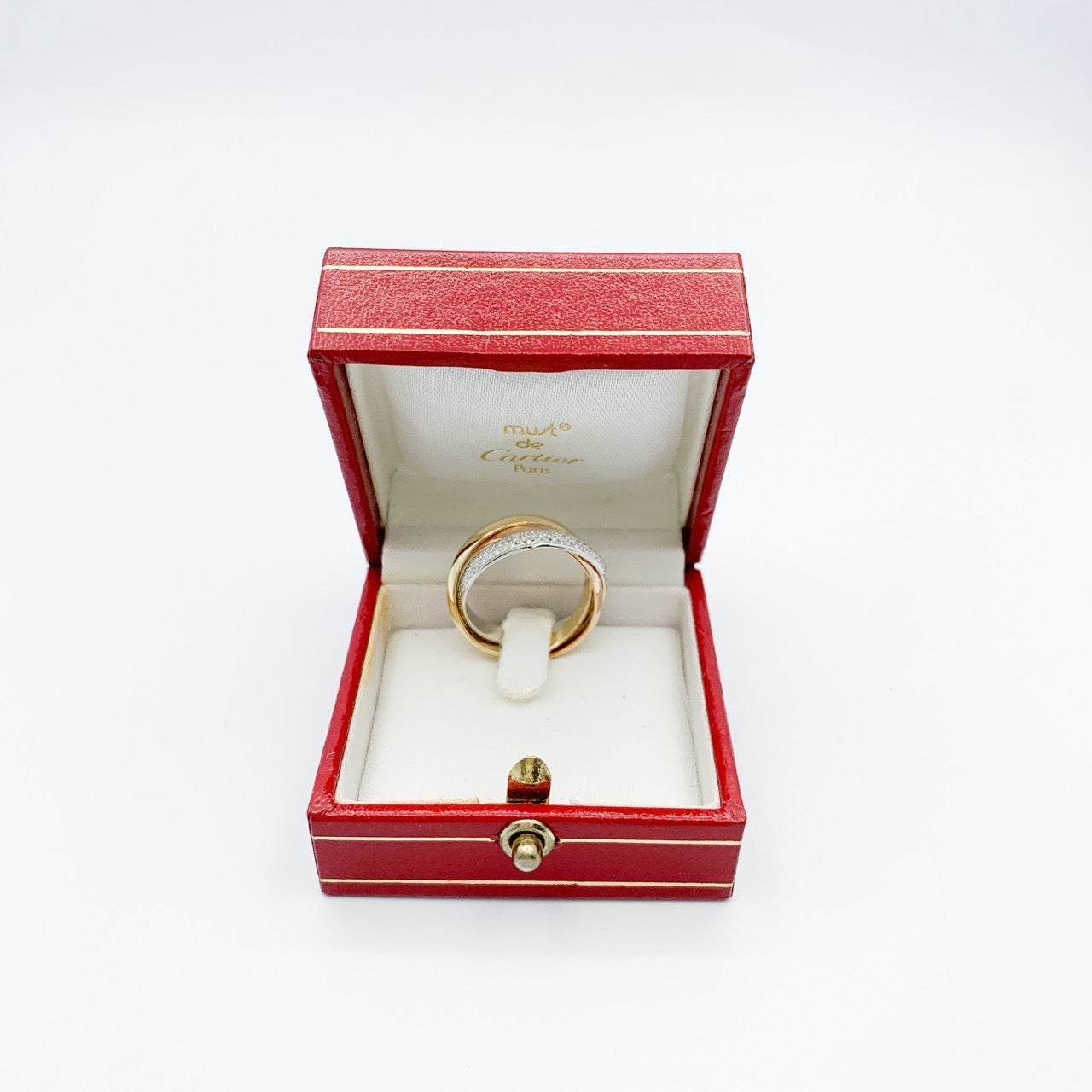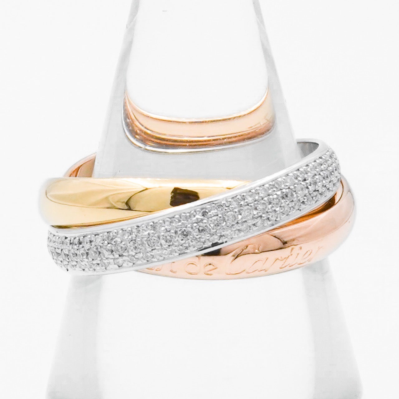 ルイ・カルティエの豊かな想像力によって1924年に誕生した、歴史の長いトリニティリングは、メゾンを象徴するジュエリーのひとつ。 永く愛用できるアクセサリーとして人気の名品。 カルティエらしい芸術性の高いデザインで日常のスタイルに彩りを添える。 外装仕上げ済みで安心してご愛用いただけます。