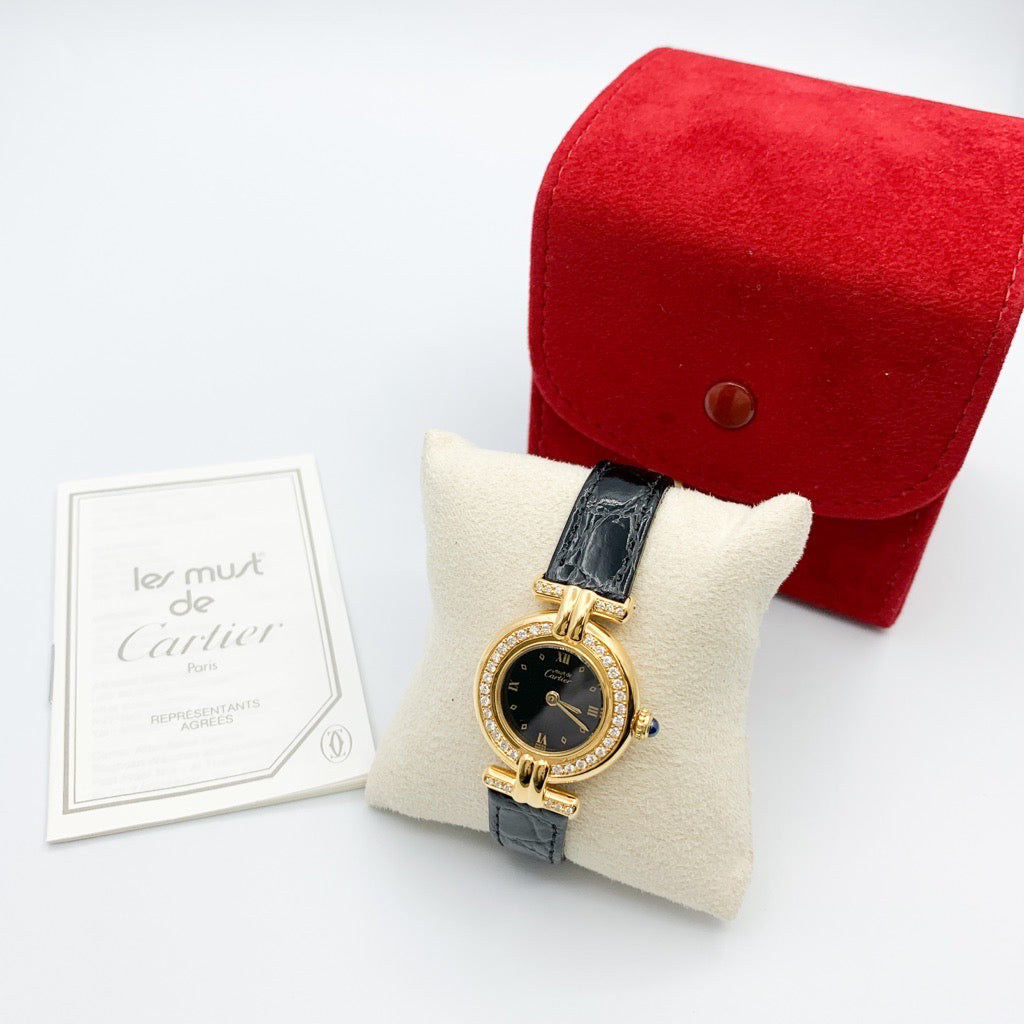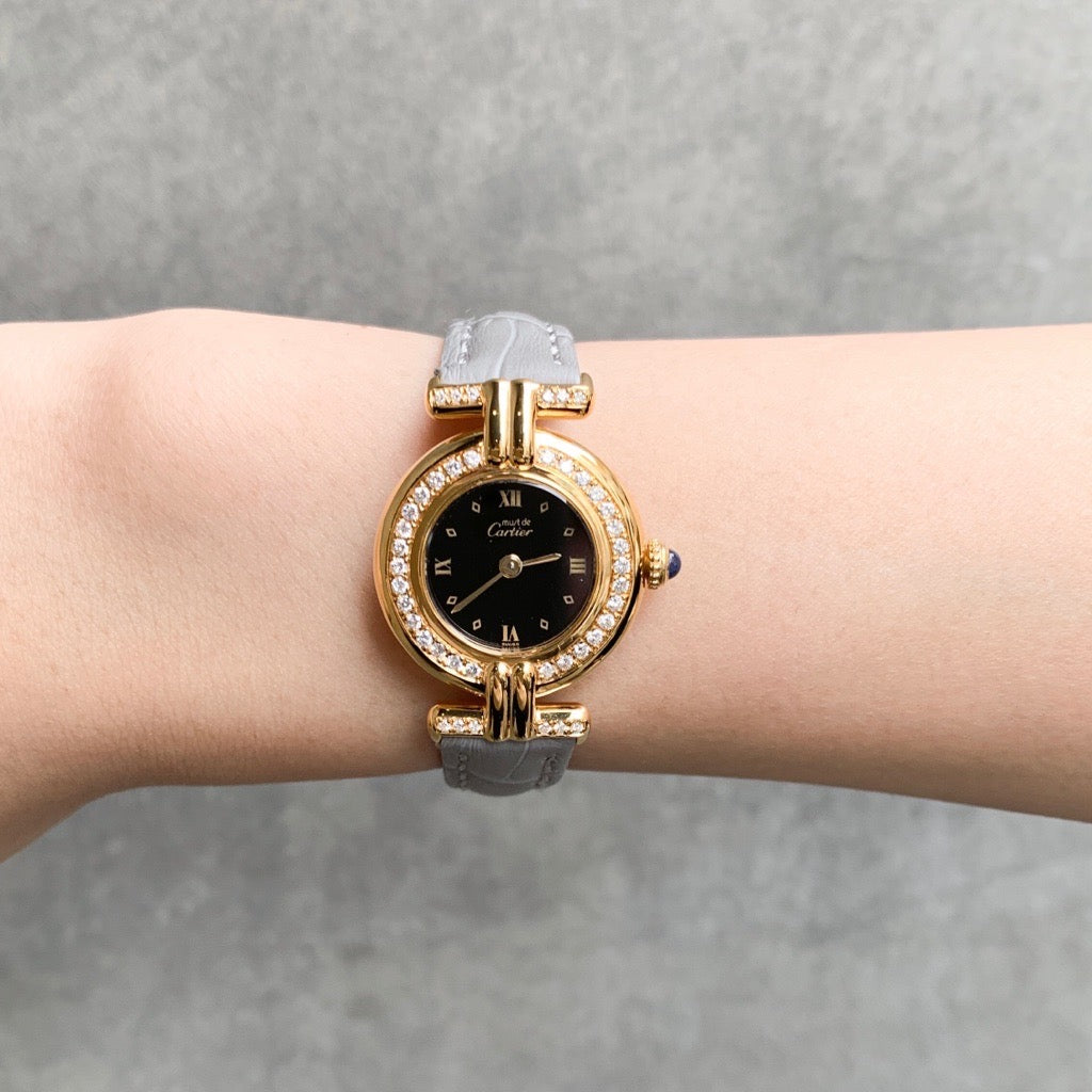 CARTIER/マストコリゼ 菱形黒ローマン文字盤 ゴールド ダイヤ
