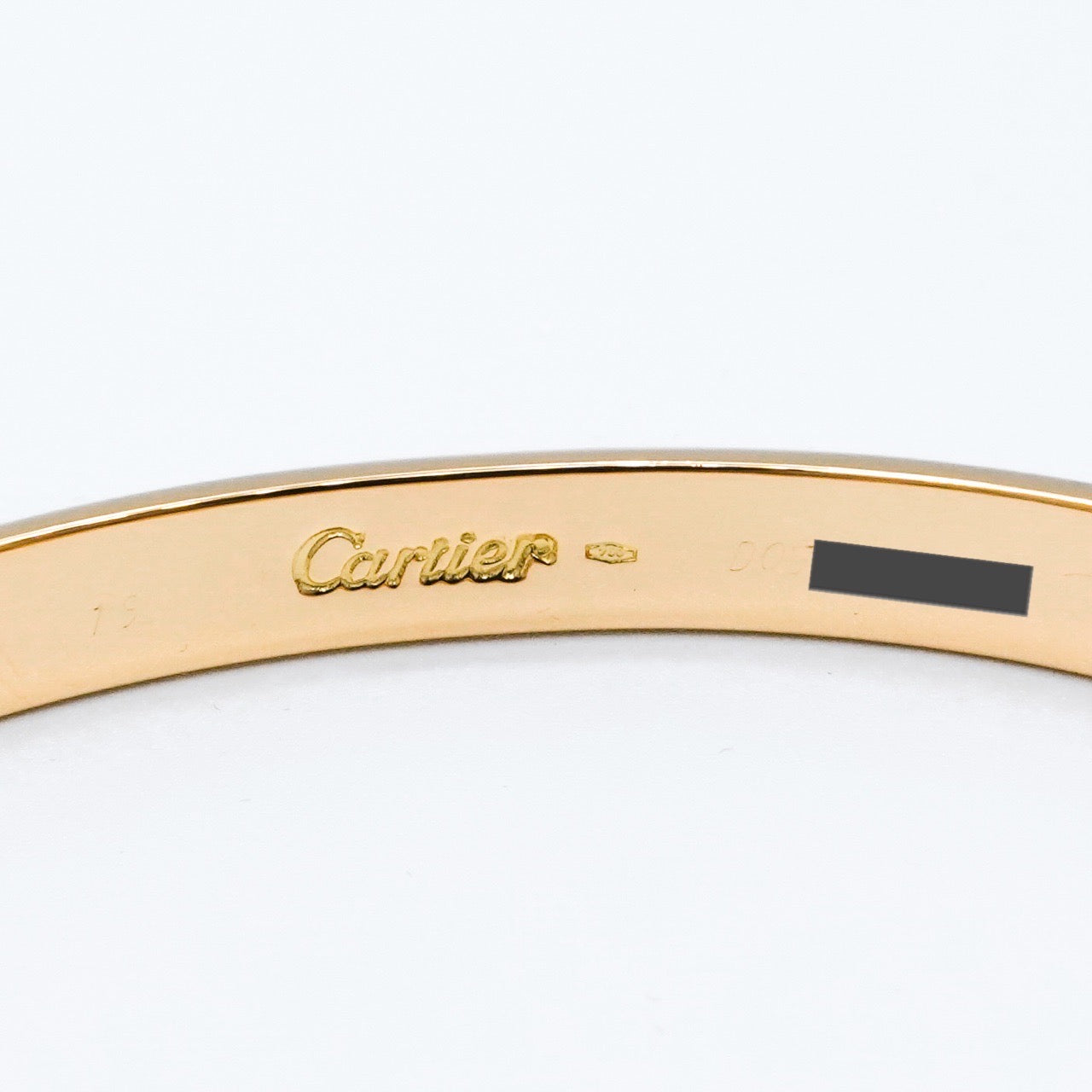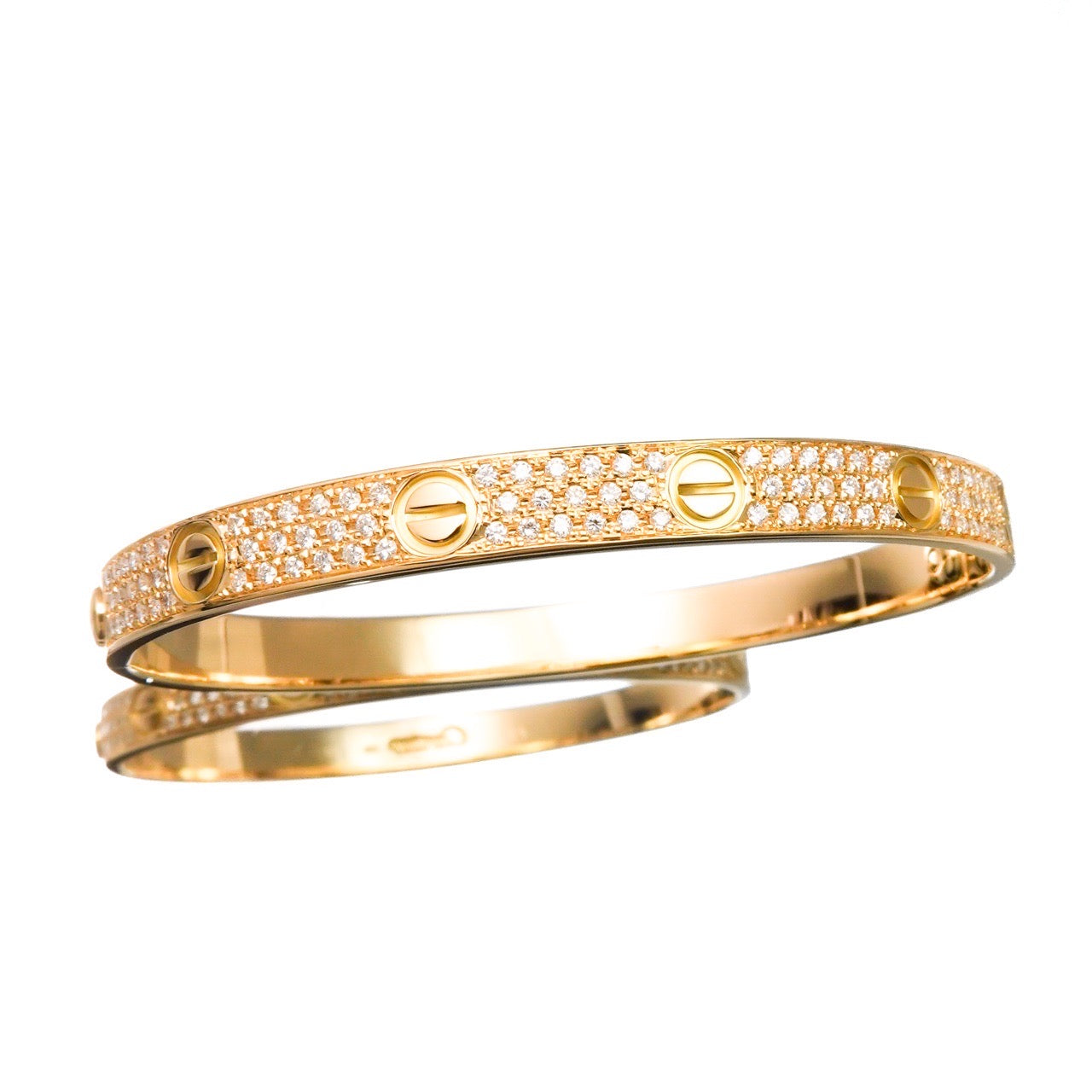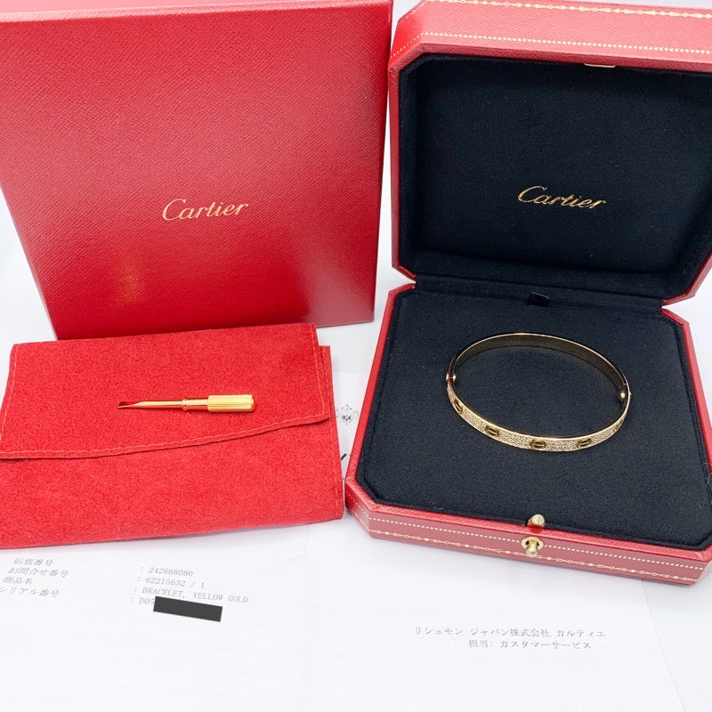 1969年にデビューしたカルティエの代表的なブレスレット《ラブブレス》 モチーフであるビスを惹き立てながら全面に並ぶダイヤモンドが、オケージョンからカジュアルスタイルまで、シーンを選ばず腕元を華やかに演出。 ペアアクセサリーとしても人気のアイテム。 カルティエ修理証明書付き&外装仕上げ済みで安心してご愛用いただけます。