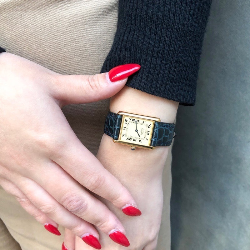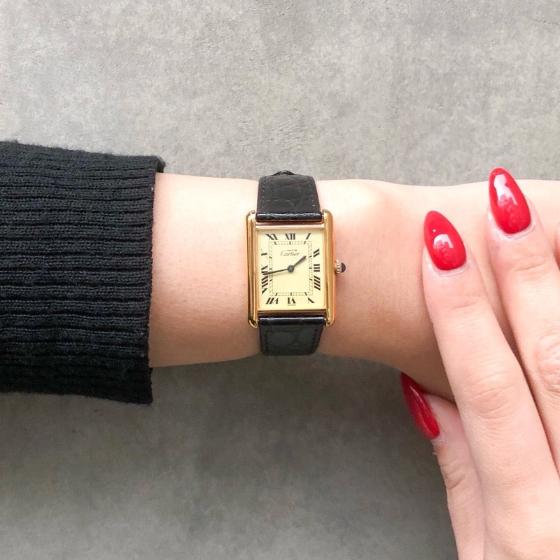 誕生から100年以上の歴史を持ち、不動の人気を誇る《タンク》 スクエアにデザインされたケース、装飾には一切の無駄がなく、そのクラシカルなデザインは、オケージョンからカジュアルスタイルまで、シーンを選ばずエレガントな演出を可能にしてくれる。LMサイズは男女ともに人気の高いサイズとなっております。当店職人、一級時計修理技能士による点検、外装仕上済みで安心してご愛用いただけます。