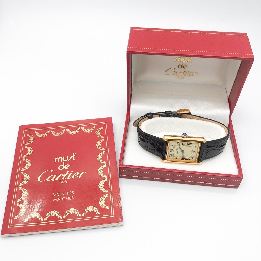 CARTIER/マストタンク LM 手巻き ベージュローマン文字盤 ゴールド