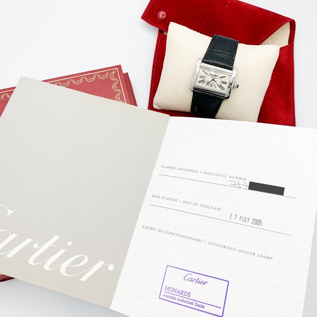 2005年5月発行のカルティエ保証書が付属している点も魅力のひとつ。