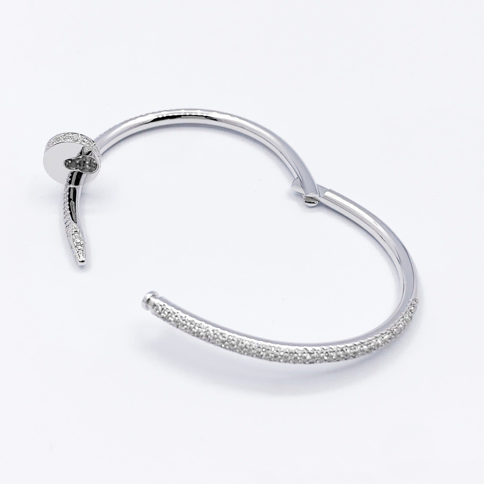 一本の釘から誕生したモダンなユニセックスジュエリー。 斬新で革新的なデザインとシンプルさで、デイリーなジュエリーとして魅力を放つ。 全体に施されたダイヤモンドが、腕元の印象を格上げ。 2016年8月のカルティエ保証書付き・外装仕上げ済みで安心してご愛用いただけます。