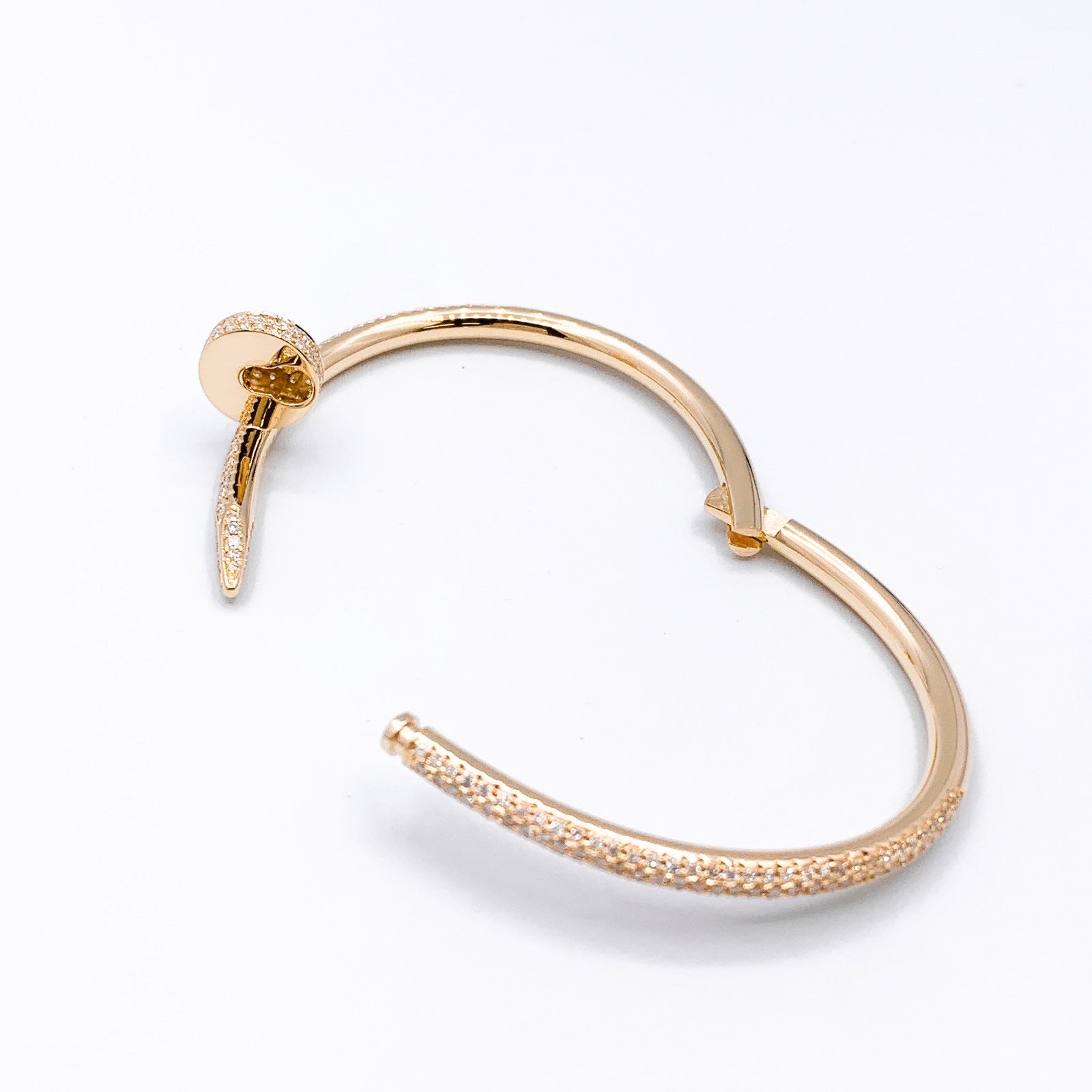 一本の釘から誕生したモダンなユニセックスジュエリー。 斬新で革新的なデザインとシンプルさで、デイリーなジュエリーとして魅力を放つ。 全体に施されたダイヤモンドが、腕元の印象を格上げ。 外装新品仕上済&カルティエ修理証明書付きで安心してご愛用いただけます。