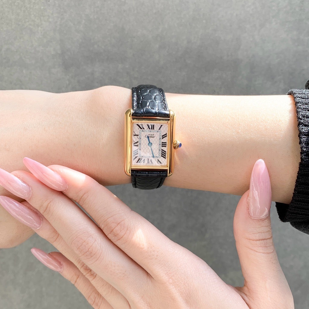 70sに始まり00sに終了した名シリーズ《マストタンク》。カルティエウォッチを世界に知らしめた伝説的なシリーズであると共に、サンローランやアンディーウォーホルも愛用していた事でも知られています。そんなマストタンクのXmas限定デザインのピンクアクアリーノ文字盤は可愛らしい印象で特別感あふれる一本。一級時計修理技能士によるOH、点検、外装仕上済みで安心してご愛用いただけます。