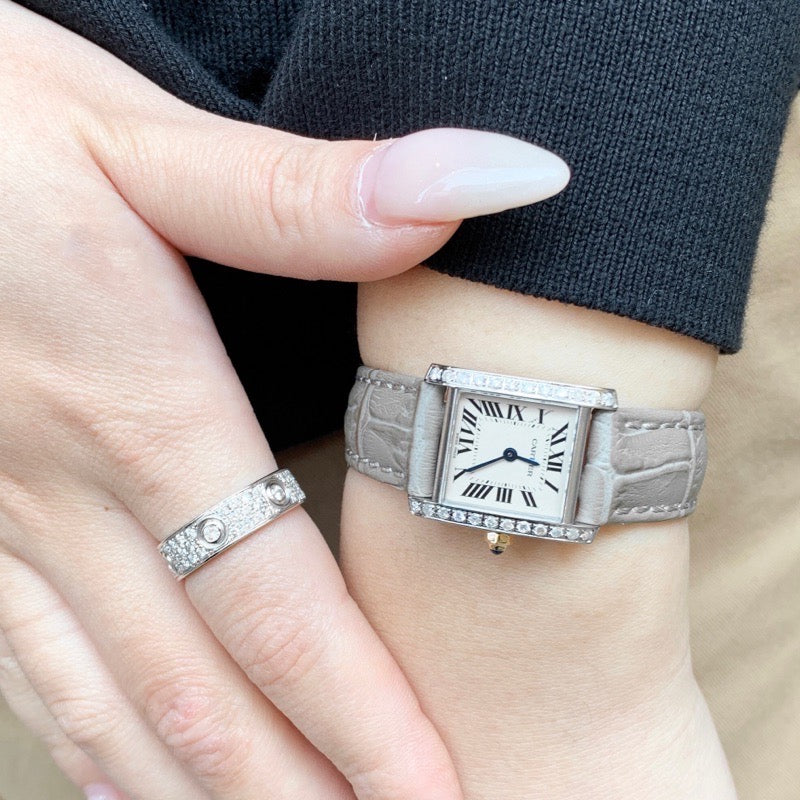 CARTIERシリーズの中でも特に人気が高く、ファーストカルティエとしても定番の《タンクフランセーズ》。どんなジュエリーとも合わせやすく、永く愛せるコンビカラーがお洒落心を満たしベゼルに施されたダイヤモンドが印象的な腕元を演出。当店職人、一級時計修理技能士によるOH、点検、外装仕上済みで安心してご愛用いただけます。