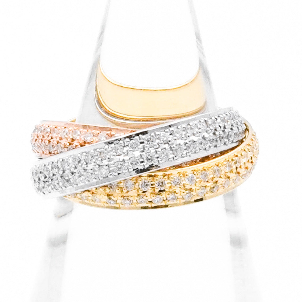 ルイ・カルティエの豊かな想像力によって1924年に誕生した、歴史の長いトリニティリングは、メゾンを象徴するジュエリーのひとつ。 永く愛用できるアクセサリーとして人気の名品。 カルティエらしい芸術性の高いデザインとスリーカラー全てに施されたダイヤモンドが手元に彩りを添える。 外装仕上げ済みで安心してご愛用いただけます。