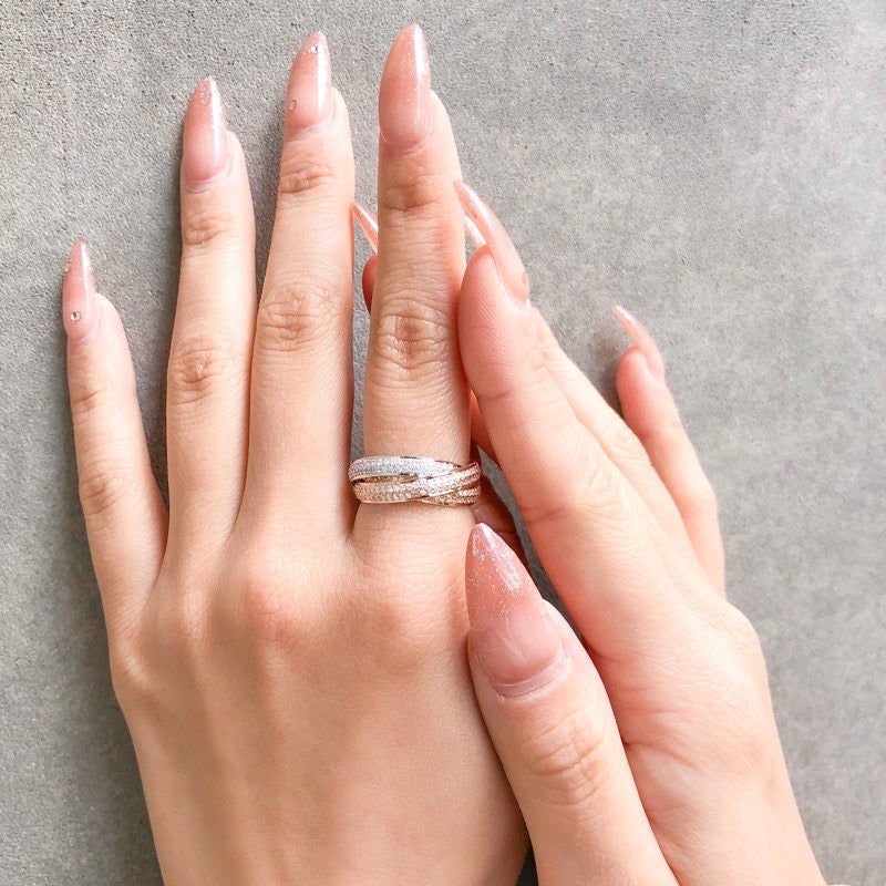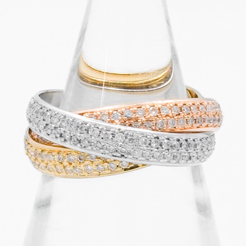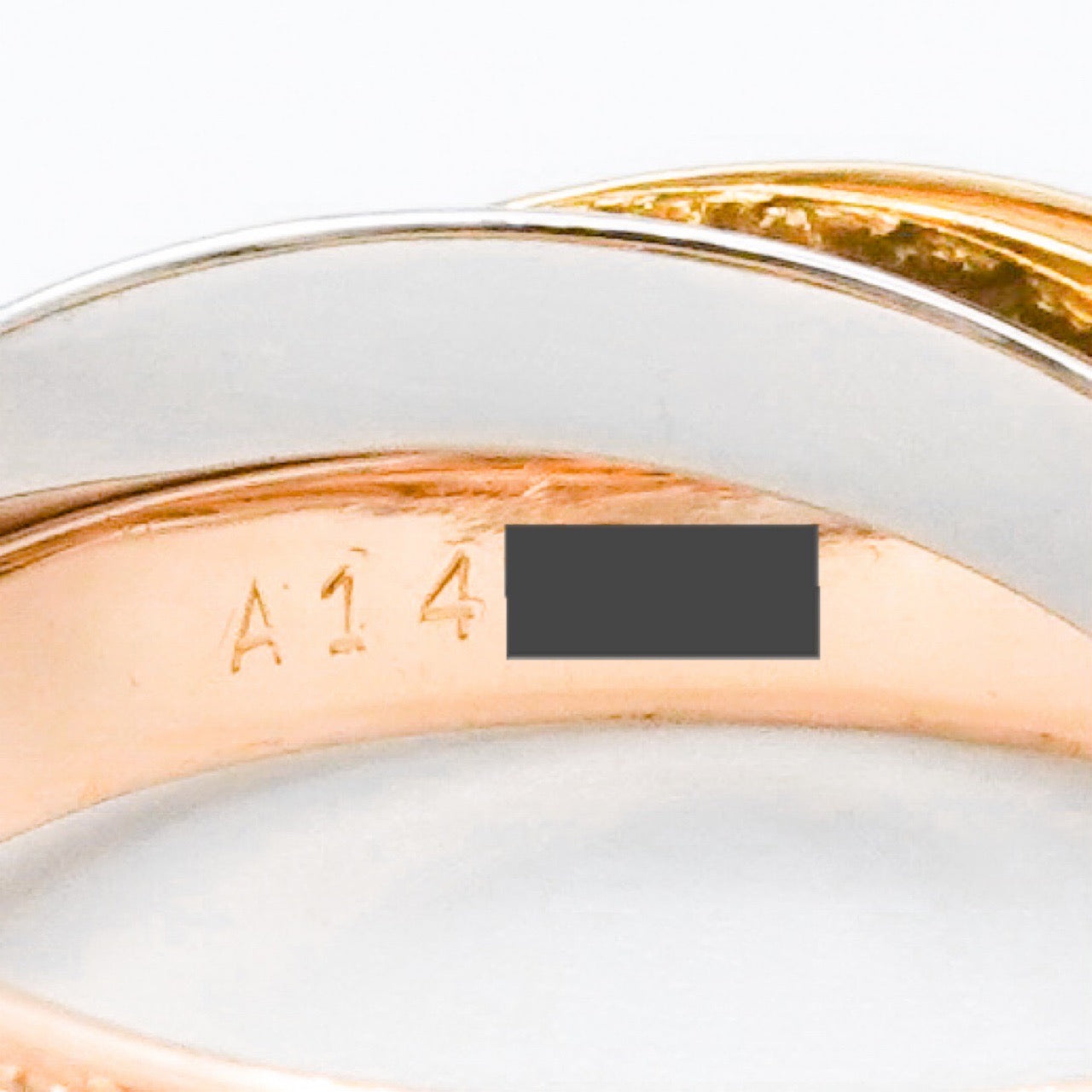 ルイ・カルティエの豊かな想像力によって1924年に誕生した、歴史の長いトリニティリングは、メゾンを象徴するジュエリーのひとつ。 永く愛用できるアクセサリーとして人気の名品。 カルティエらしい芸術性の高いデザインとスリーカラー全てに施されたダイヤモンドが手元に彩りを添える。 外装仕上げ済みで安心してご愛用いただけます。