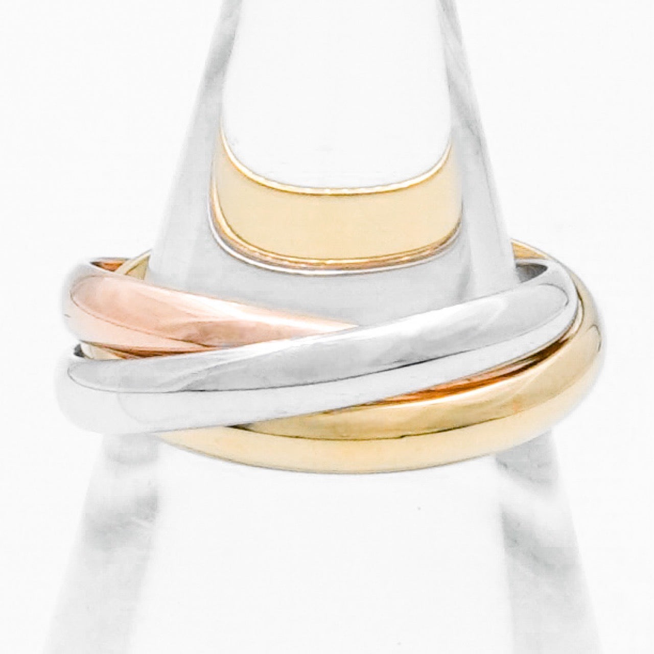 3色のゴールドが織りなす、永遠の調和。 カルティエを象徴する名作「トリニティリング」は、愛・友情・忠誠を意味する3つの輪が美しく絡み合う、時代を超えて愛され続けるジュエリーです。 こちらは指元にさりげない存在感を添えるSMサイズ。 ボリュームを抑えた上品なバランスで、日常使いからフォーマルなシーンまで幅広く活躍します。 一本で着けても洗練された印象に、他のリングとの重ね付けでも美しく調和するのがトリニティならではの魅力。 イエローゴールド・ホワイトゴールド・ピンクゴールドそれぞれの輝きが、動くたびに表情を変え、指先に奥行きのある美しさを演出。 性別やスタイルを問わず、多くの人に選ばれてきた理由を実感できる逸品です。 流行に左右されることのない、一生もののカルティエジュエリーとして、初めてのトリニティにもおすすめのリングです。 さらにカルティエ保証書付き&外装仕上げ済みで安心してご愛用いただけます。