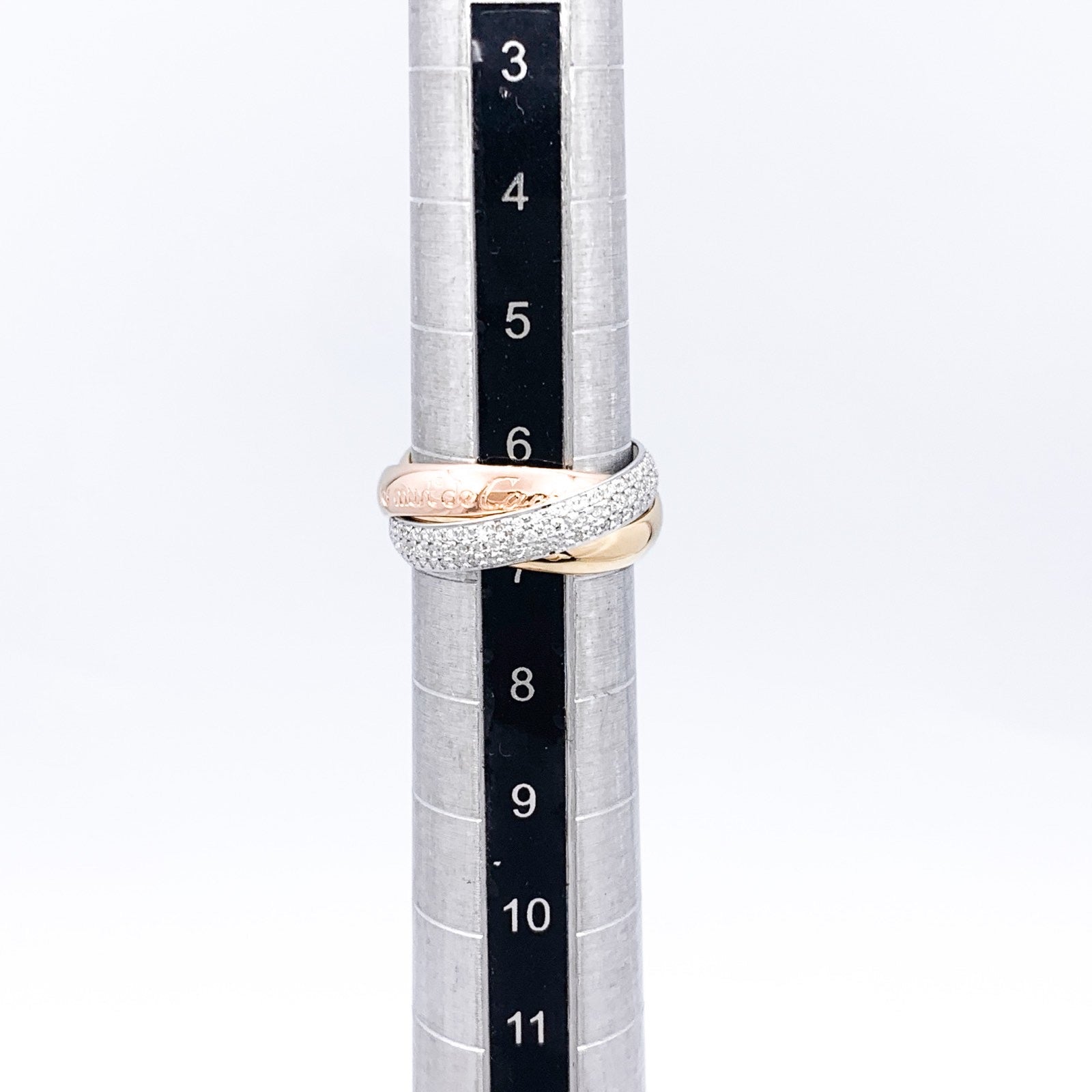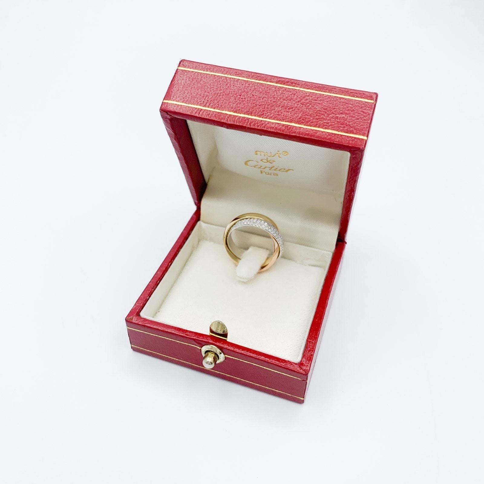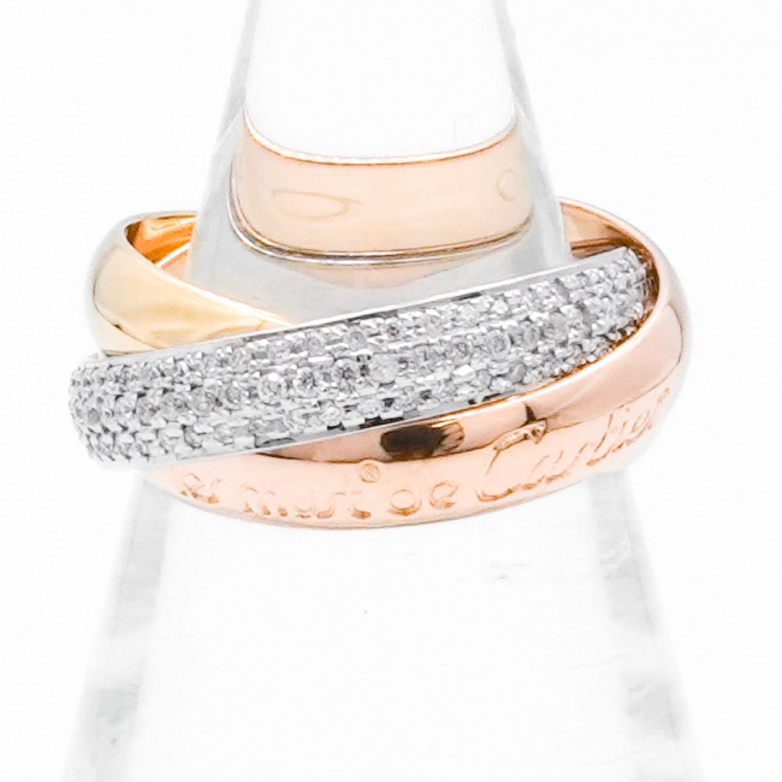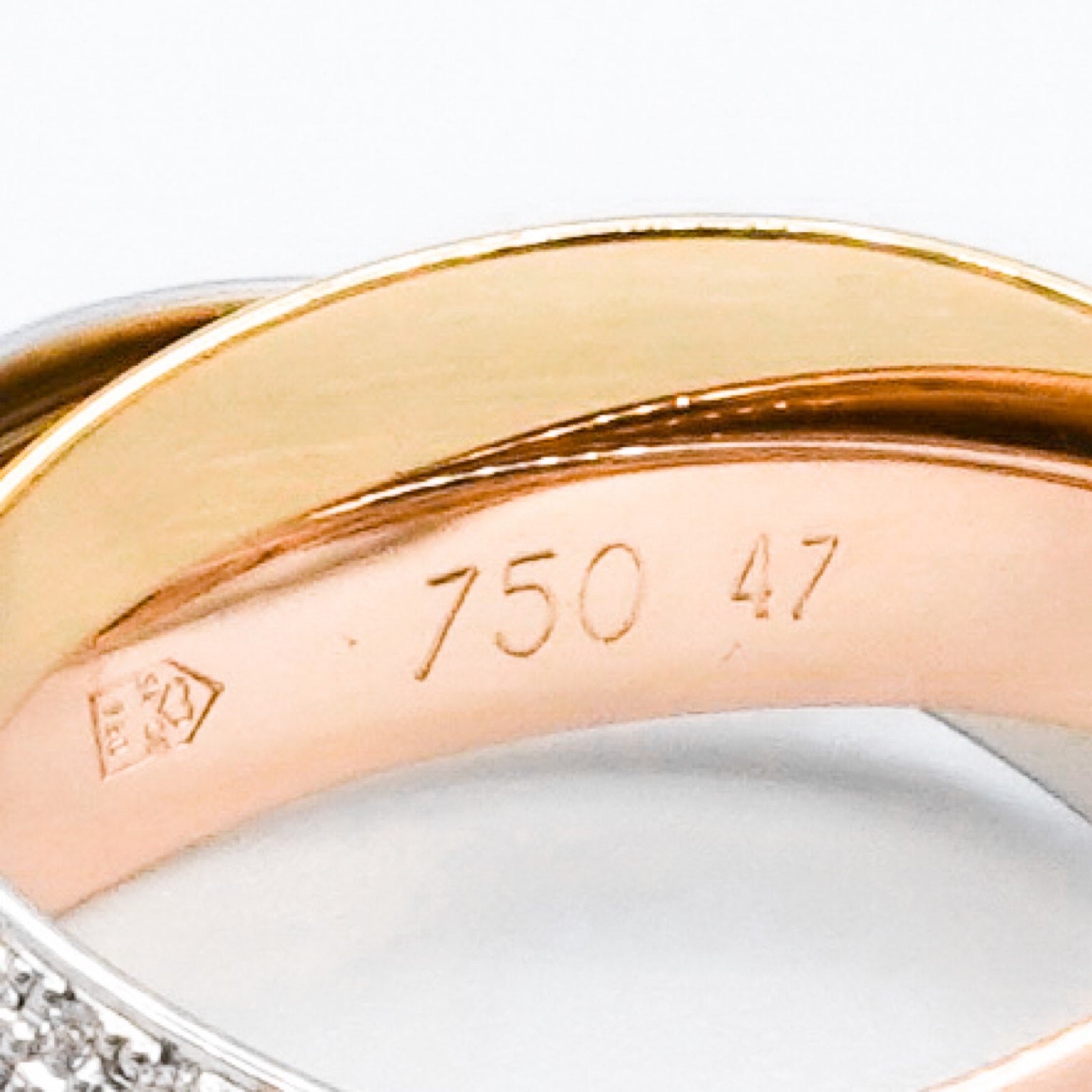 ルイ・カルティエの豊かな想像力によって1924年に誕生した、歴史の長いトリニティリングは、メゾンを象徴するジュエリーのひとつ。 永く愛用できるアクセサリーとして人気の名品。 カルティエらしい芸術性の高いデザインで日常のスタイルに彩りを添える。 外装仕上げ済みで安心してご愛用いただけます。