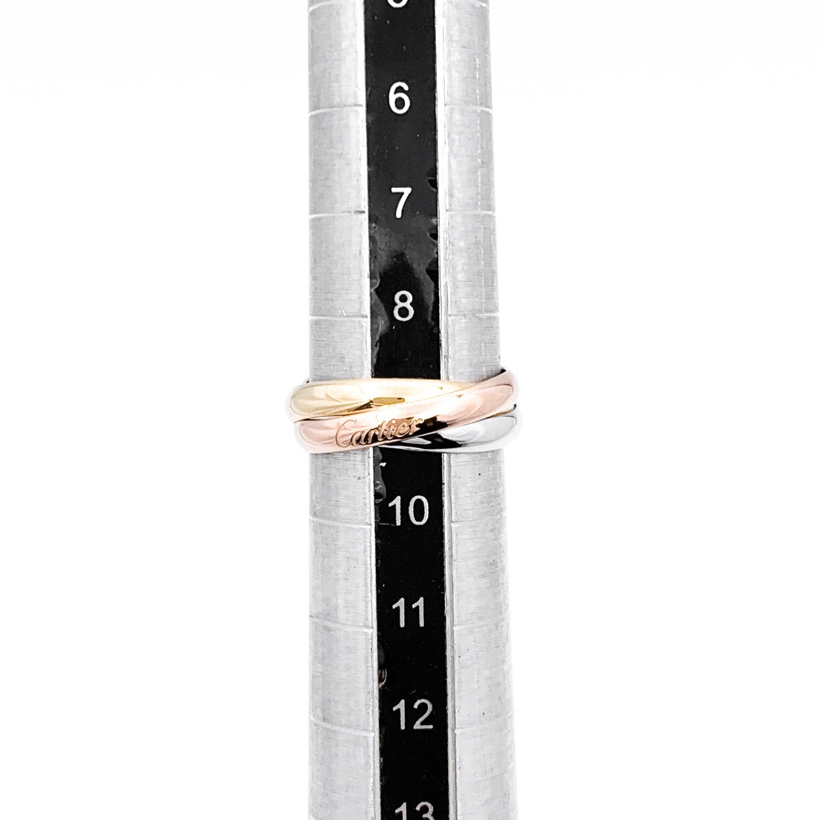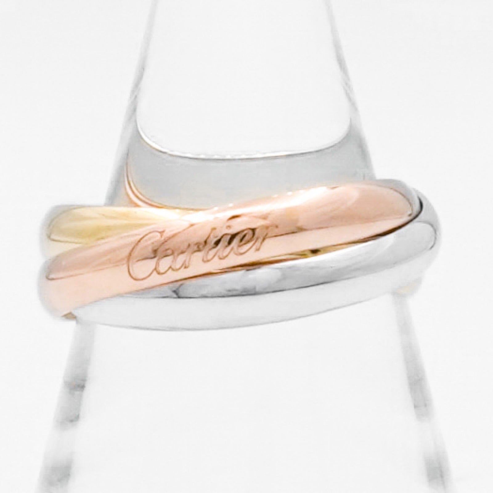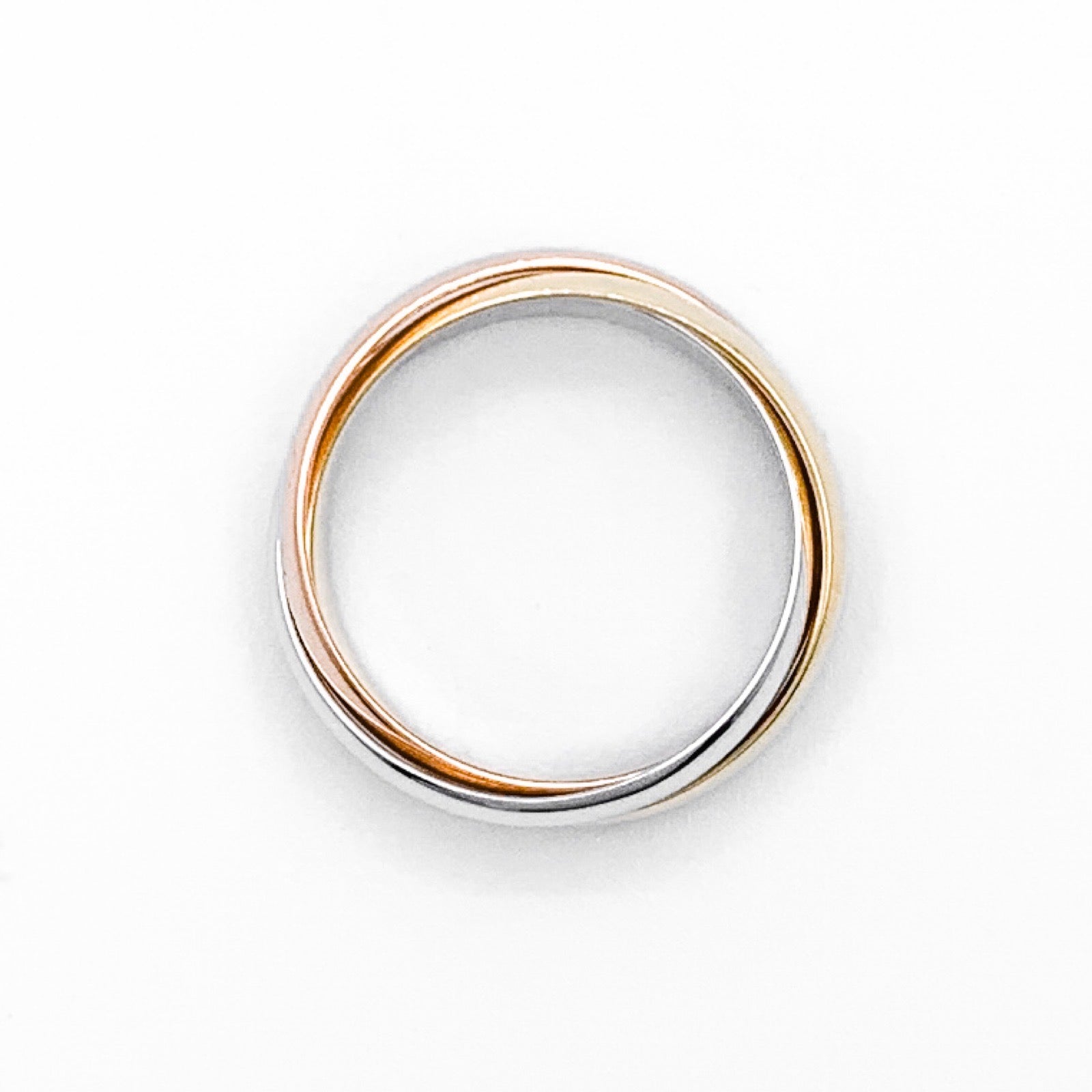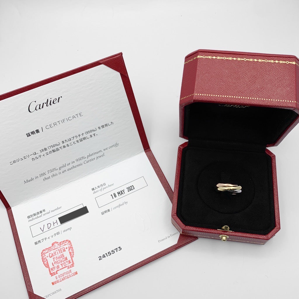 永遠のバランスを纏う、「トリニティリング」 3つのゴールドが柔らかく重なり合うトリニティリングは、カルティエを象徴するタイムレスな名作。 イエロー・ホワイト・ピンク、それぞれの色味が調和しながらも個性を放ち、手元に奥行きのある美しさを添えてくれます。 指を動かすたび、リング同士がふわりと触れ合い、まるで“自分らしさ”が揺らぎなく重なっていくような感覚。 シンプルでありながら、他にはない存在感を生み出すデザインは、年齢やスタイルを問わず馴染むのも魅力です。 さらに、2023年5月のカルティエ保証書付き&外装仕上げ済みで安心してご愛用いただけます。
