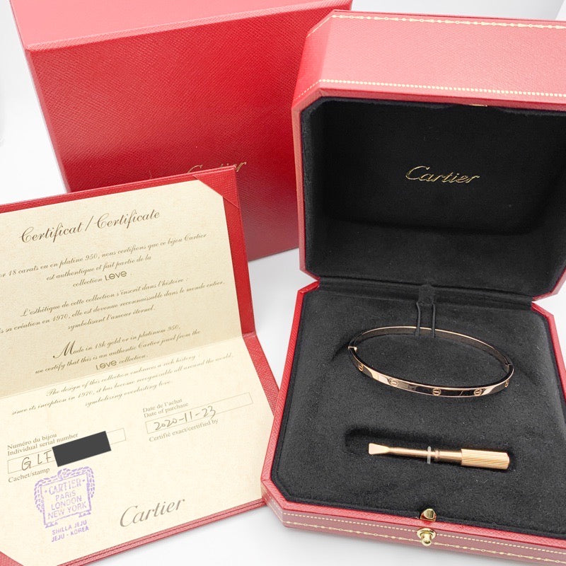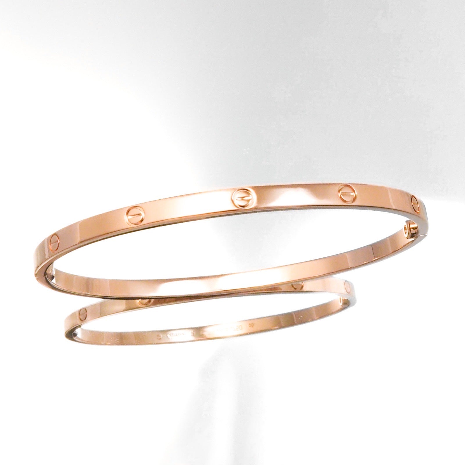永遠の象徴として世界中で愛され続ける、カルティエの名作「ラブブレス」。 その中でもSMサイズのピンクゴールドは、肌馴染みがよく品の良さを感じさせる一本です。 シンプルでミニマルなデザインながら、手首に添えた瞬間に存在感を放ち、 男性にはスタイリッシュな魅力を、女性にはエレガントな輝きを添えてくれるユニセックスな仕上がり。 カルティエ2020年11月保証書付き&外装仕上げ済みで安心してご愛用いただけます。