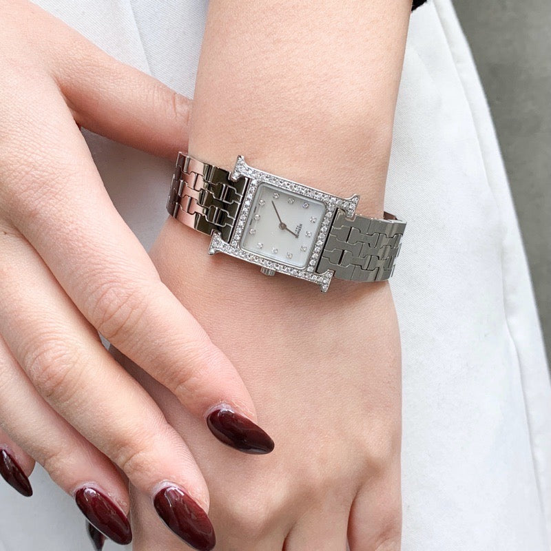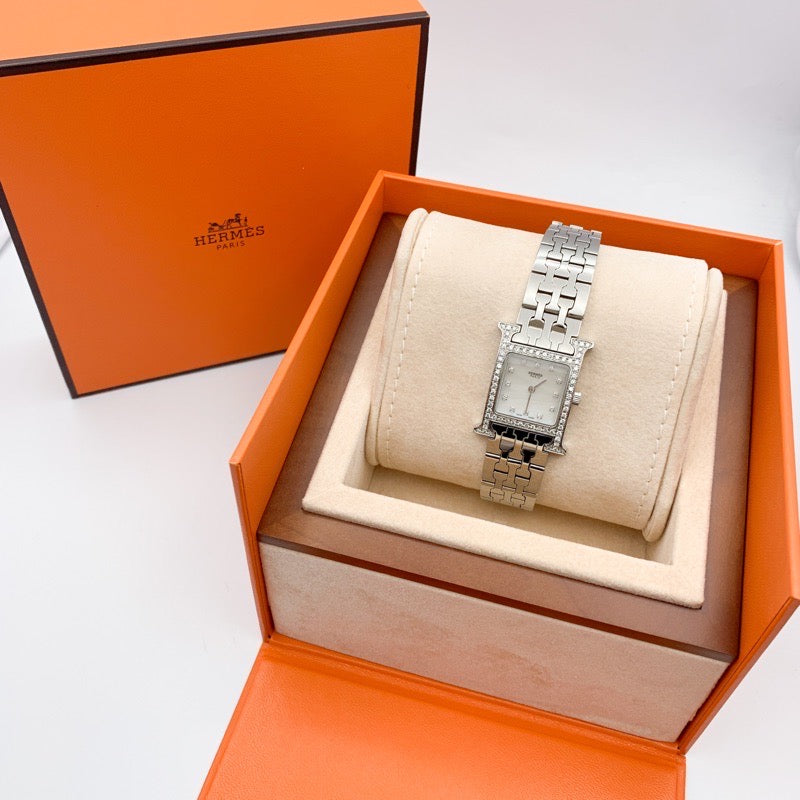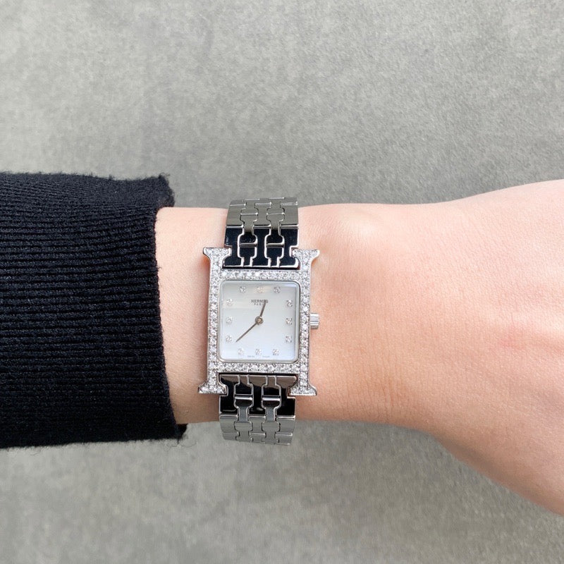 エルメスを象徴する「Hウォッチ」に、上品なシェルダイヤ文字盤を組み合わせた特別感のある一本。