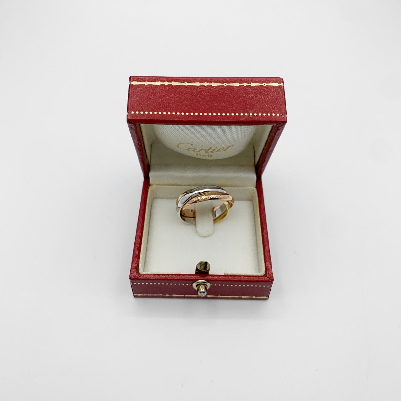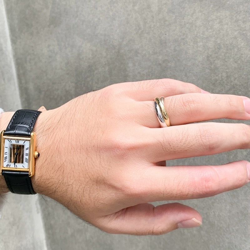 カルティエを象徴する、永遠のアイコン「トリニティリング」。 3本のリングが絡み合うこのデザインは、愛・忠誠・友情という普遍的な価値を表現しています。 それぞれ異なるカラーのゴールドが織りなすコントラストは、主張しすぎることなく、指元に上品な存在感を添えます。 時代や流行に左右されない洗練されたデザインは、フォーマルにもカジュアルにも自然に溶け込み、男女問わず支持され続けてきた理由を感じさせます。 1本で身につけるのはもちろん、他のリングとの重ね付けでも美しく映える万能さ。 日常のお守りとしても、特別な記念日のギフトとしてもふさわしい、一生もののジュエリーです。