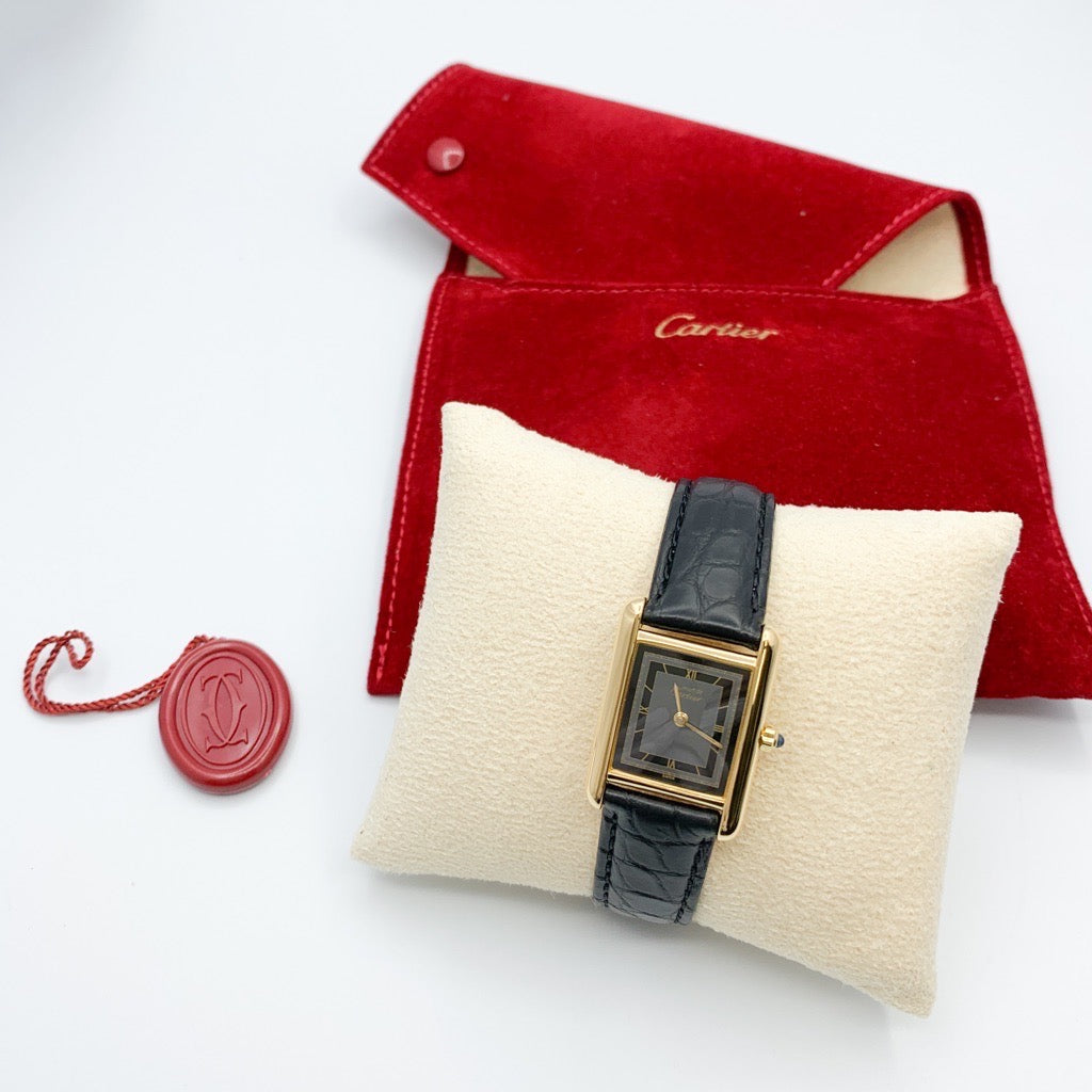 CARTIER/マストタンク SM グレー×ブラックローマン文字盤 ゴールド