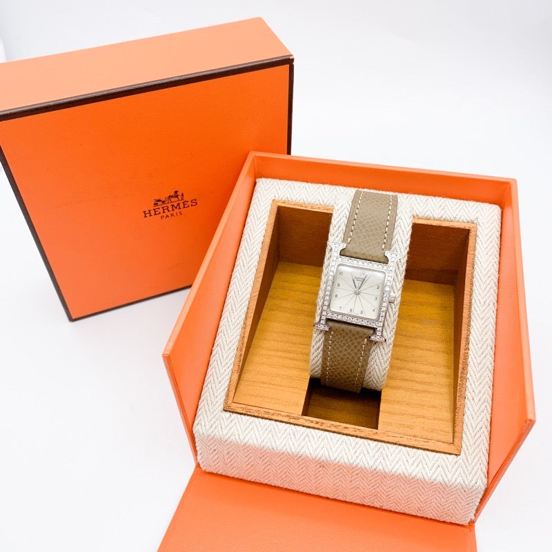 HERMES/Hウォッチ 白文字盤 シルバー ダイヤ