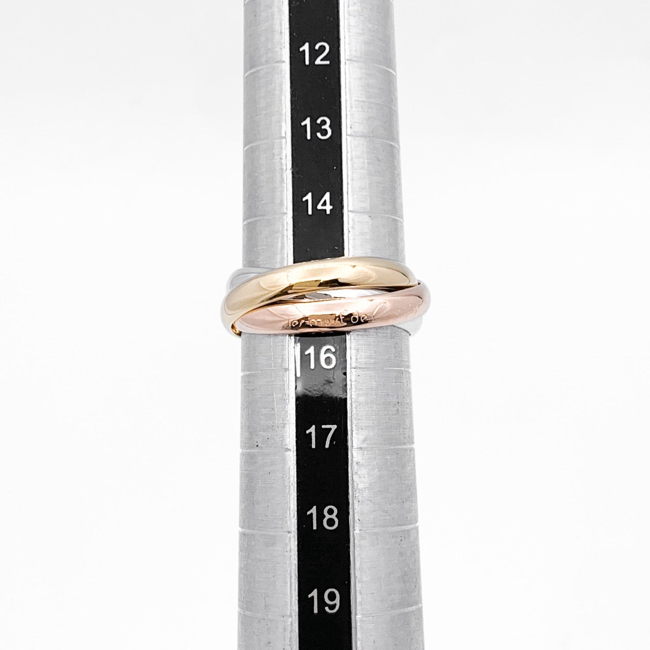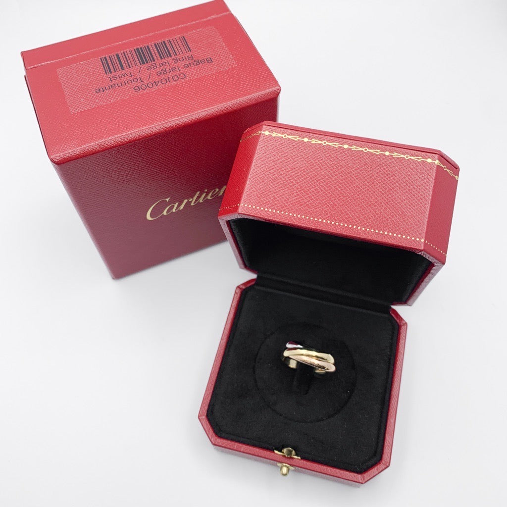 永遠のバランスを纏う、「トリニティリング」 3つのゴールドが柔らかく重なり合うトリニティリングは、カルティエを象徴するタイムレスな名作。 イエロー・ホワイト・ピンク、それぞれの色味が調和しながらも個性を放ち、手元に奥行きのある美しさを添えてくれます。 指を動かすたび、リング同士がふわりと触れ合い、まるで“自分らしさ”が揺らぎなく重なっていくような感覚。 シンプルでありながら、他にはない存在感を生み出すデザインは、年齢やスタイルを問わず馴染むのも魅力です。