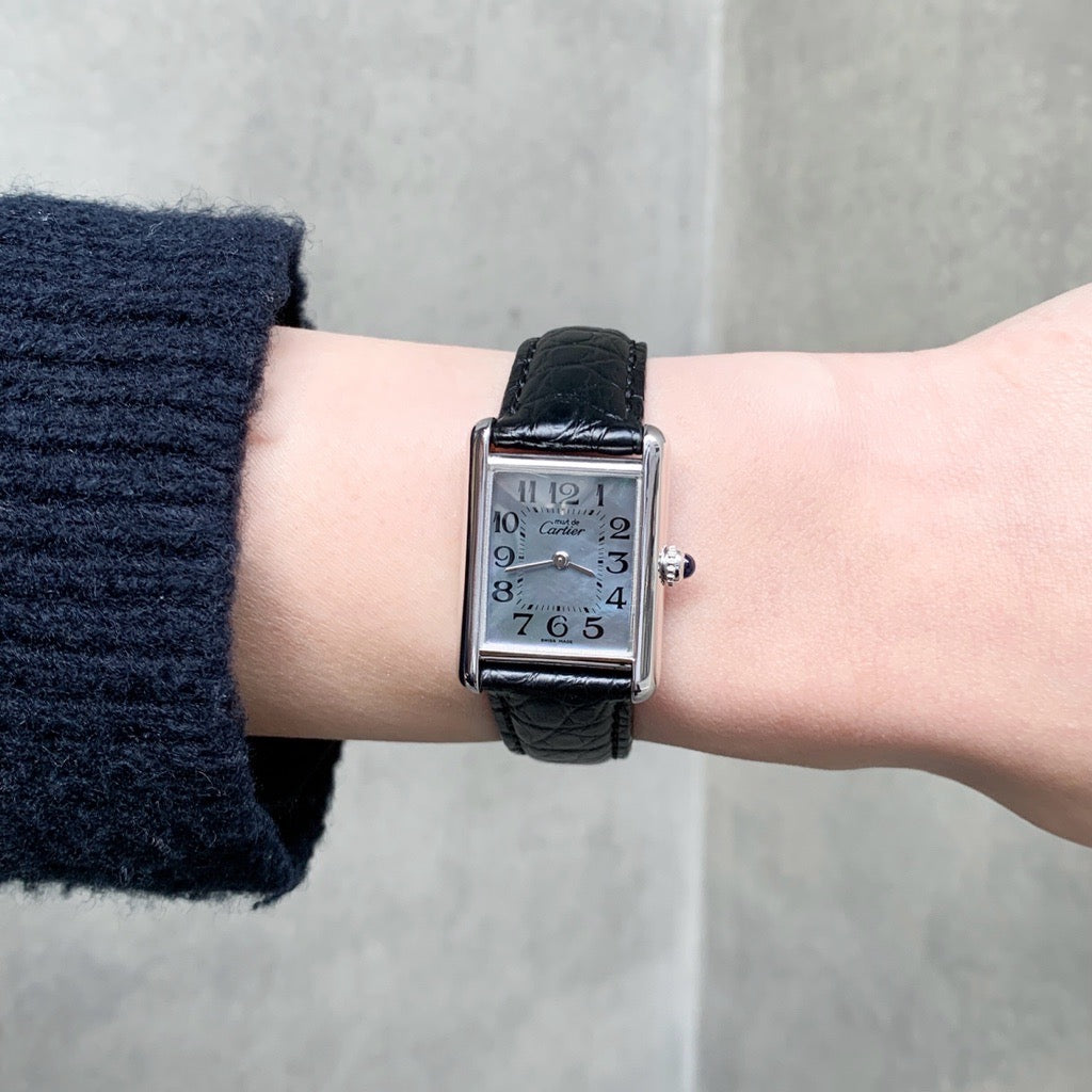 CARTIER/マストタンク MM ブルーシェルアラビア文字盤 シルバー