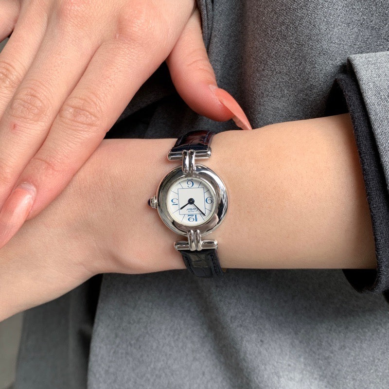 現在はすでに生産終了となり、市場に出回る数も限られた希少なモデル。控えめでありながら確かな存在感を放ち、“人と被らないカルティエ”をお探しの方にふさわしい一本です。