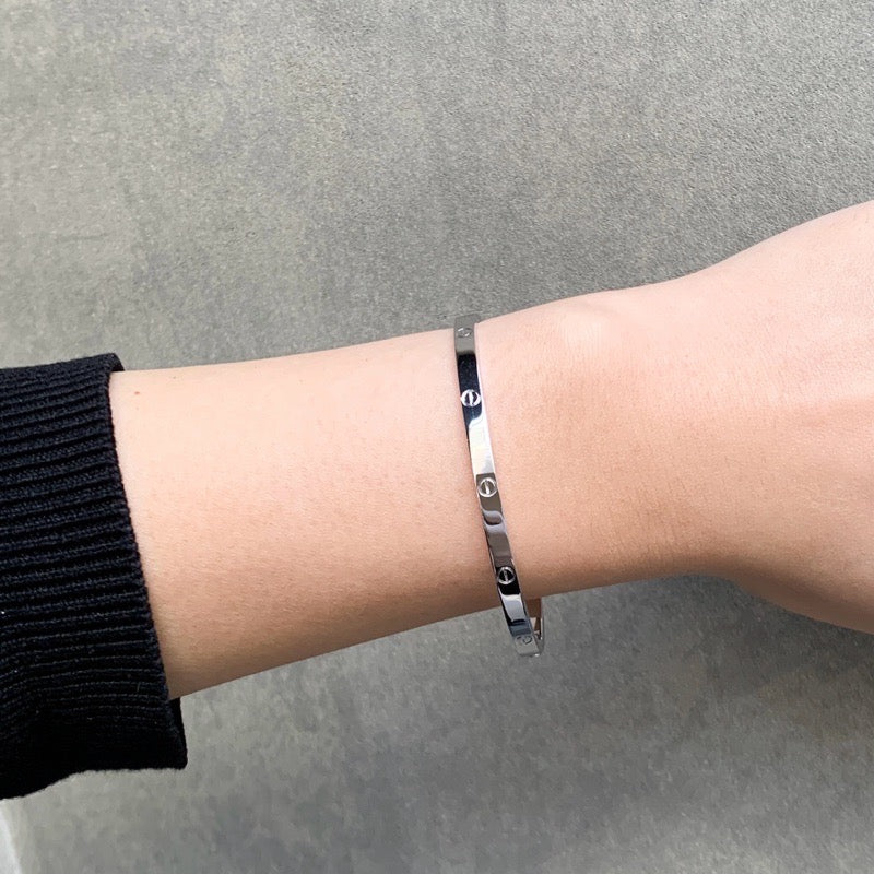 カルティエを象徴する「LOVE ブレスレット」 その中でもSMサイズは、洗練された存在感と日常に寄り添うバランスを兼ね備えた一本です。 控えめながらも確かな輝きを放つフォルムは、性別やスタイルを問わず自然に手元へ溶け込み、 ひとつ着けるだけで装い全体を上質に引き上げてくれます。 単体でミニマルに楽しむのはもちろん、時計や他のジュエリーとの重ね付けでも美しく調和。 オン・オフを問わず、長く愛用できるタイムレスなデザインです。 自分へのご褒美としてはもちろん、 大切な人とのペアや節目のギフトにもふさわしい、特別な一本。 “身に着ける人の人生に寄り添い続ける” それが、LOVE ブレスレット SMサイズの魅力です。 さらに、外装仕上げ済みで安心してご愛用いただけます。